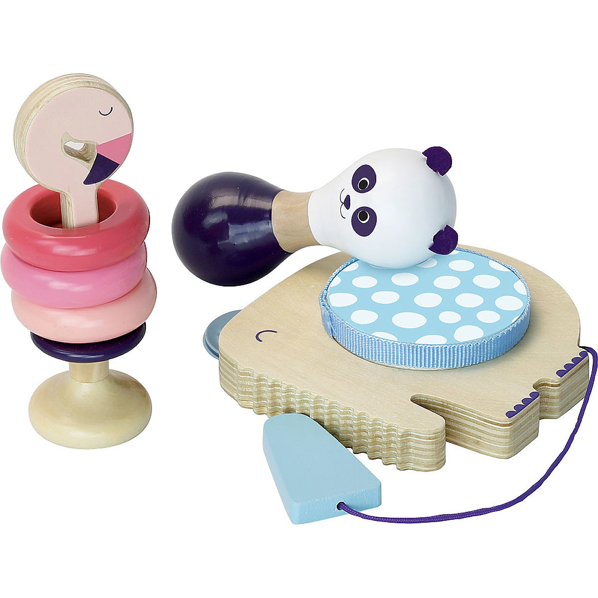 Ein schönes Musikset für die Kleinsten. Es besteht aus einer bunten Rumba-Kugel in Form eines Pandas, einem Elefanten-Tamburin und einem Flamingo-Rassel. .. mehr