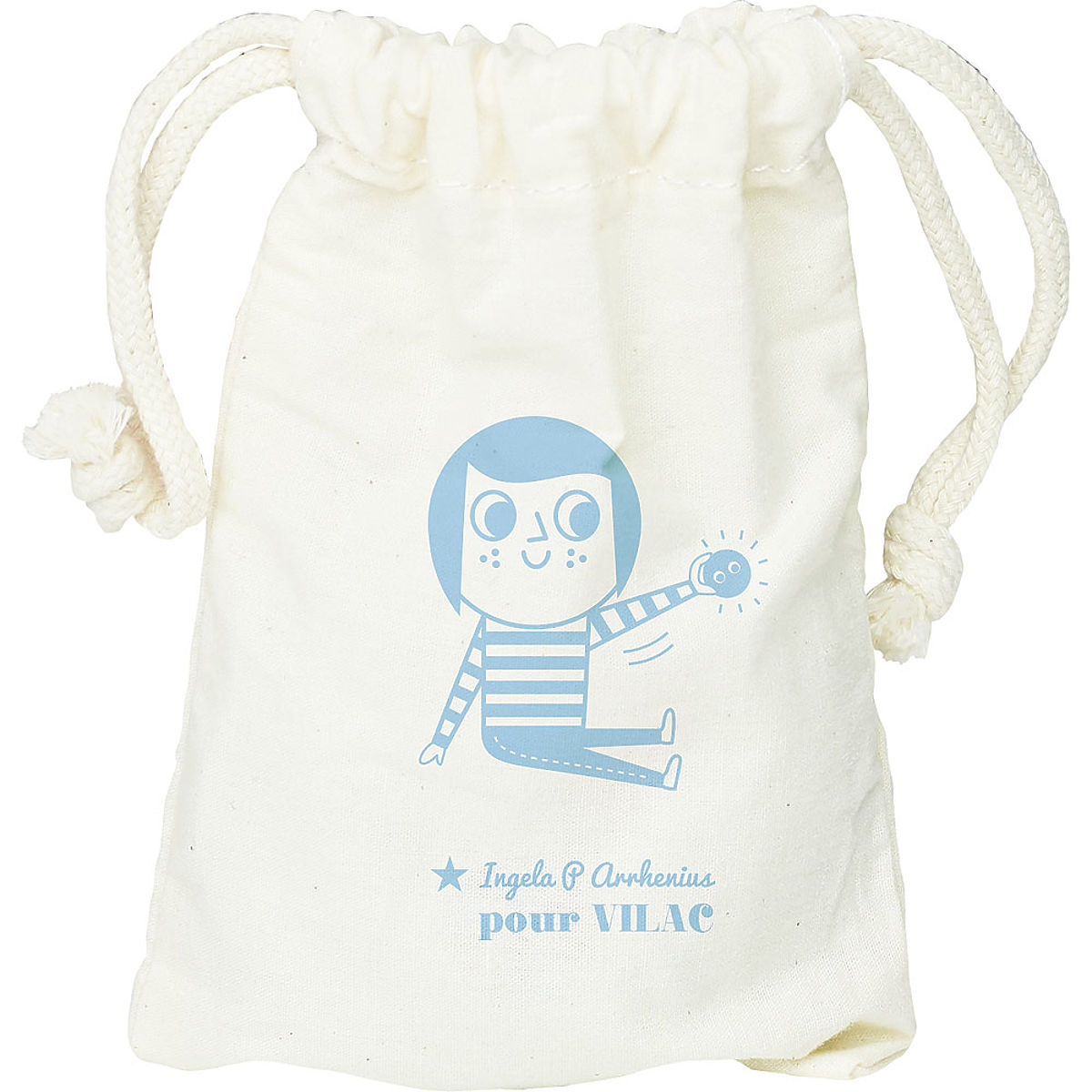 Ein hübscher Hase als Rassel – Rumba-Kugel. Illustration von Ingela P. Arrhenius. Hergestellt aus Holz und Filz in Frankreich. Durchmesser 8 cm. Hauptmerkmale: Hergestellt in Frankreich, Design von Ingela P. Arrhenius. Die schwedische Künstlerin Ingela Peterson Arrhenius wurde 1967 geboren. Kunst und Design hatten immer einen Platz in ihrem Leben, und bevor ihre Karriere als Illustratorin begann, arbeitete Ingela als Art Director in Stockholm. Danach studierte sie Werbung und Grafikdesign an einer Kunstschule ebenfalls in Stockholm. 1992 begann sie als freiberufliche Illustratorin zu arbeiten und war international in den Bereichen Werbung, Design, Verlagswesen tätig... In der Vergangenheit entwarf sie Druckmuster für Stoffe, Tapeten, Schreibwaren, arbeitete auch an Verpackungen, Produktdesign, Wohnaccessoires und Spielzeug. Ihre Poster und Designer-Spielzeuge sind weltweit zu finden. Sie hat eine Leidenschaft für den Retro-Stil, was in ihren Arbeiten und ihrer Begeisterung für Typografie und Farben deutlich zu sehen ist. Derzeit lebt sie mit ihrem Mann und zwei Söhnen in Stockholm.