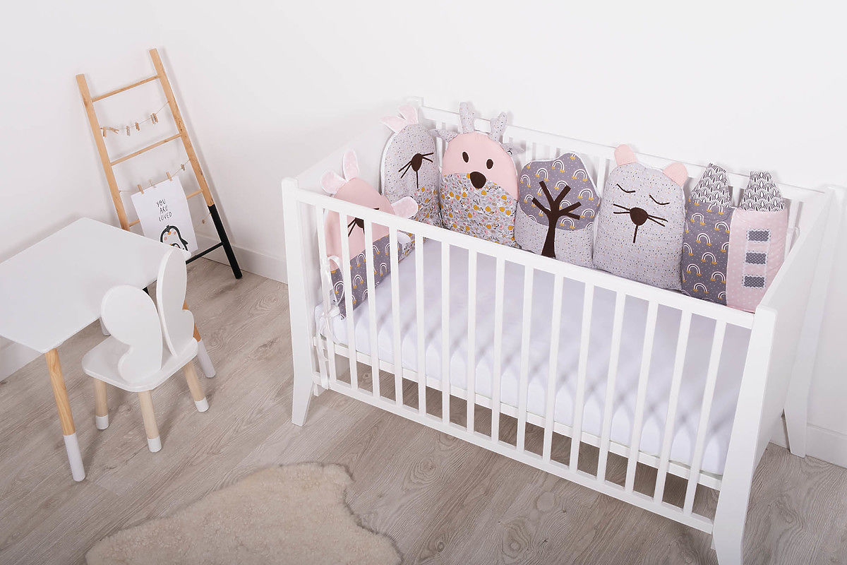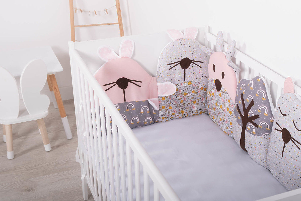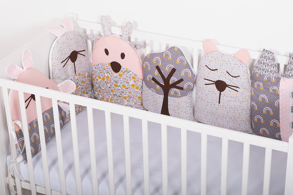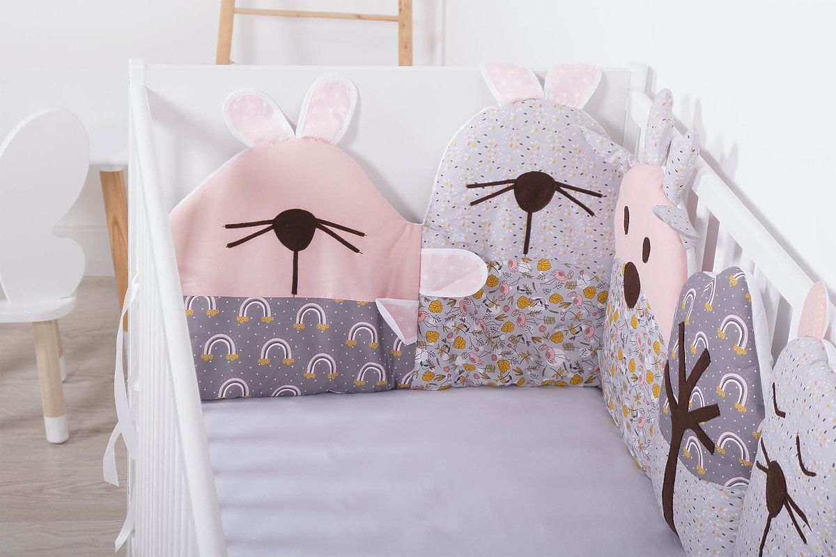 Banaby.at » Bettwaren / Nestchen für Babybett / Modularer Kaminsims für die Krippe Flowers - grau-rosa