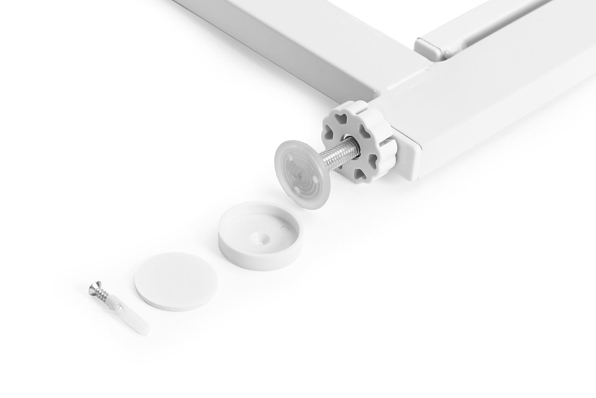 PERFEKTE ANPASSUNG AN JEDES INTERIEURDank der mitgelieferten zusätzlichen Elemente können Sie die Konstruktion verlängern, die Barriere bietet eine Breiteneinstellung im Bereich von 74 bis 105 cm, was eine ideale Anpassung an verschiedene Breiten von Durchgängen und Treppen ermöglicht. Zur Einstellung können Sie auch Befestigungsschrauben (8 cm) verwenden, die es Ihnen ermöglichen, die Länge der Konstruktion auf den Zentimeter genau anzupassen.
