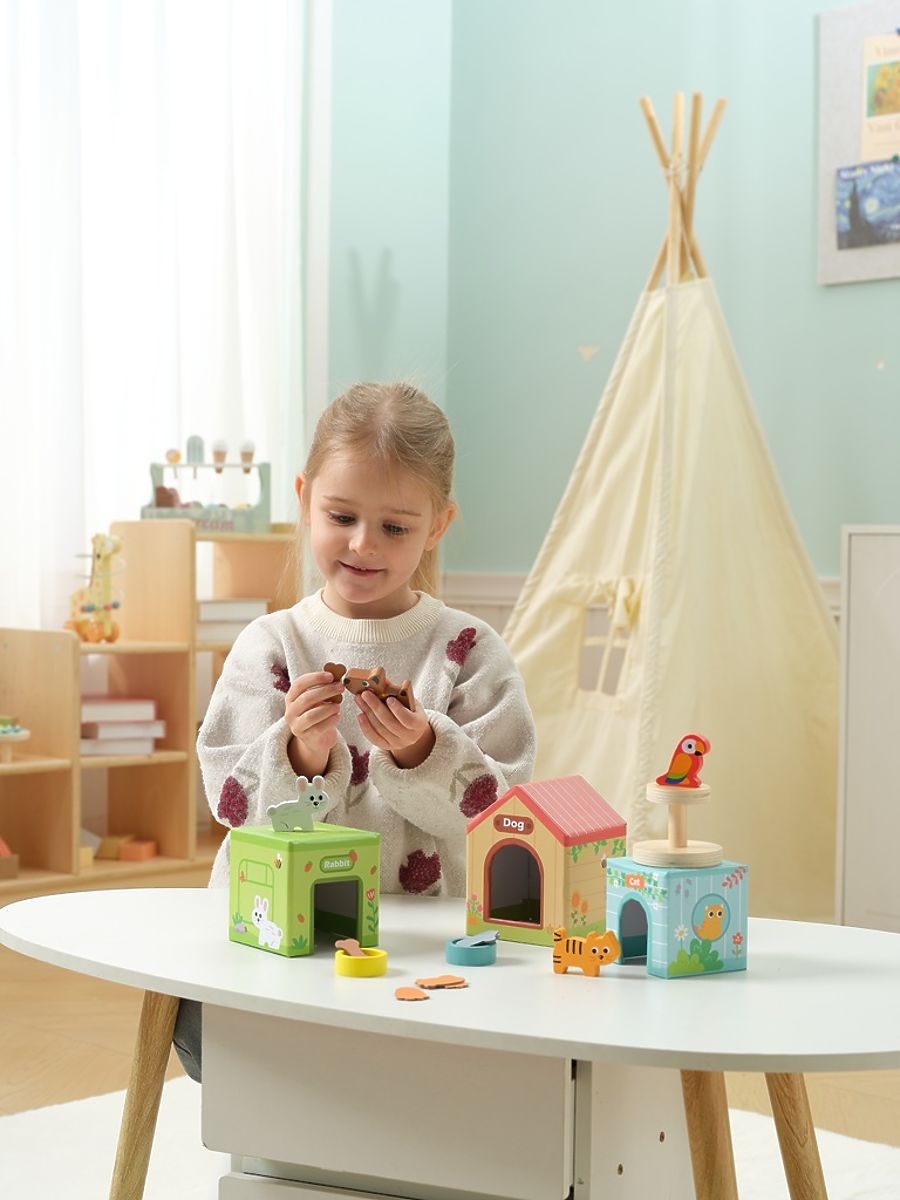 Erleben Sie jede Menge Spaß mit Ihren Holzhaustieren! Hund, Katze und Kaninchen haben jeweils ihr eigenes Häuschen und Futter, und ein Papagei wacht von seiner Stange aus über sie. Beim Spielen üben Kinder ihre Feinmotorik, sozialen Fähigkeiten und die Hand-Auge-Koordination. Dieses spielerische, farbenfrohe Set regt zu fantasievollem Spiel an. Es bietet Kindern die Möglichkeit, zu lernen, wie Tiere leben und wie man sich richtig um sie kümmert. Hergestellt aus FSC-zertifiziertem Holz. Hauptmerkmale: kompakte, platzsparende Ausführung, fördert Motorik und Vorstellungskraft, schafft eine Beziehung zu Tieren und Natur. Das FSC®-Zertifikat (Forest Stewardship Council) garantiert, dass das Holz, aus dem das Produkt hergestellt wurde, nicht illegal geschlagen wurde und aus Wäldern stammt, die auf umweltfreundliche oder naturnahe Weise bewirtschaftet werden, wobei strenge Umwelt- und Sozialanforderungen eingehalten werden. Das FSC®-Zeichen auf dem Produkt bedeutet, dass Sie durch Ihren Kauf helfen, Wälder zu schützen und eine umweltfreundliche, verantwortungsvolle oder naturnahe Bewirtschaftung zu unterstützen, dank derer unsere Wälder stabiler, gesünder sind, eine natürliche Artenzusammensetzung haben und besser gegen die negativen Folgen des Klimawandels gewappnet sind.
