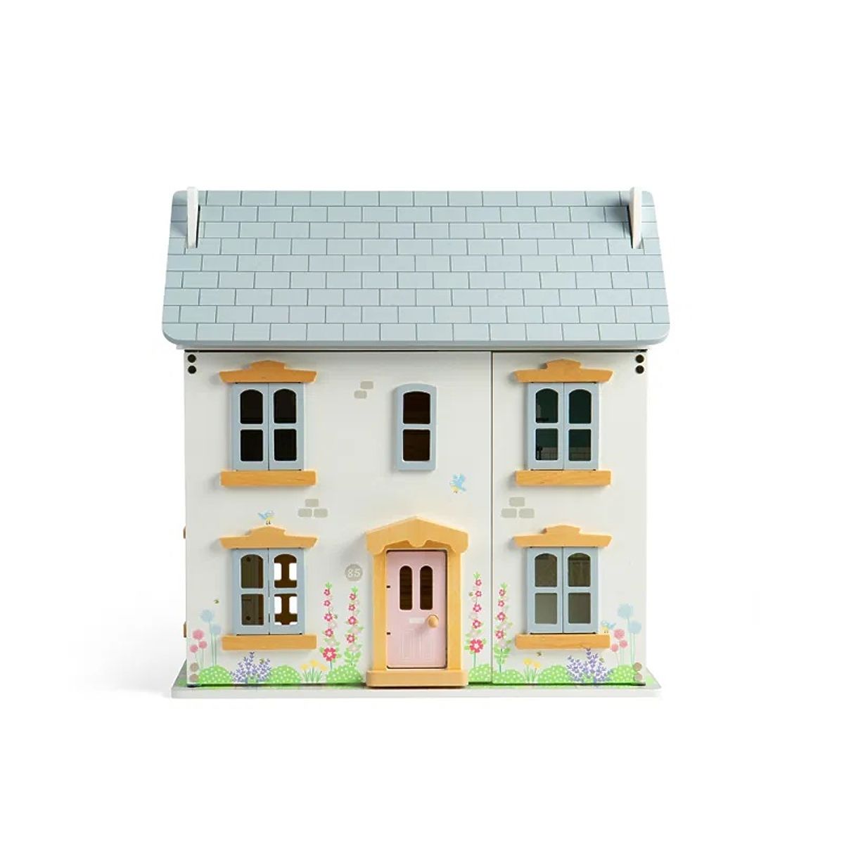 Willkommen im stilvollen Sommer-Puppenhaus in sanften Pastellfarben mit vielen Blumen auf der Fassade, das Ihnen eine sommerliche und entspannte Atmosphäre vermittelt. Das Puppenhaus ist voller charakteristischer viktorianischer Elemente, wie Erkerfenster, hohes Dach und eingerahmte Eingangstür in Pastellrosa. Es bietet viel Platz im Erdgeschoss mit Küche und Wohnzimmer, im ersten Stock mit zwei Schlafzimmern und im Dachgeschoss. Zwei Treppen führen vom Erdgeschoss in den ersten Stock und vom ersten Stock ins Dachgeschoss. Das Puppenhaus hat eine aufklappbare Vorderwand, Dachboden, Fenster und Eingangstüren und sogar eine Tür vom Wohnzimmer zum Garten. Das Haus fördert die fantasievolle Spielweise der Kinder, unterstützt ihre Geschicklichkeit, Sprachfähigkeiten und emotionale Entwicklung. Es ist aus hochwertigem und nachhaltigem FSC®-zertifiziertem Holz gefertigt und mit ungiftigen Farben und Lacken versehen. Es entspricht den aktuellen europäischen Sicherheitsstandards. Möbel und Puppen sind nicht im Lieferumfang enthalten. Hauptmerkmale: 2 Etagen, 4 Zimmer, 2 Treppen und Dachboden, aufklappbare Vorderwand, Dachboden, Fenster und Türen, fördert fantasievolles Spiel, verbessert Sprachfähigkeiten und emotionale Entwicklung, entwickelt Geschicklichkeit, hergestellt aus FSC®-zertifiziertem Holz, geeignet ab 3 Jahren. Die Marke und das FSC®-Zertifikat (Forest Stewardship Council) garantieren, dass das Holz, aus dem das Produkt hergestellt wurde, nicht illegal abgeholzt wurde und aus Wäldern stammt, die schonend oder naturnah bewirtschaftet werden, wobei strenge Umwelt- und Sozialanforderungen eingehalten werden. Das FSC®-Label auf dem Produkt bedeutet, dass Sie durch Ihren Kauf helfen, Wälder zu schützen und eine schonende, verantwortungsvolle oder naturnahe Bewirtschaftung zu unterstützen, dank derer unsere Wälder stabiler, gesünder sind, eine natürliche Artenzusammensetzung haben und besser den negativen Folgen des Klimawandels widerstehen können.