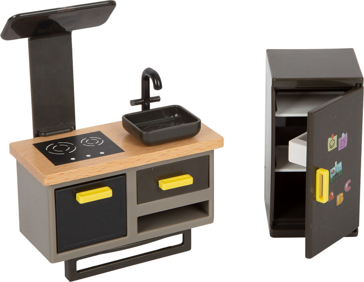 Dieses moderne Puppenhaus hat eine offene Vorderseite mit schönen künstlerischen Details und einem modernen Interieur. Eine kombinierte Küche mit Essbereich, Schlafzimmer, Badezimmer und auch eine kleine Terrasse mit Sitzgelegenheit. Perfektes Spielzeug für fantasievolles Spielen von Kindern. Offenes Wohnen mit Wendeltreppe, zu öffnenden Fenstern, modernem Badezimmer im Erdgeschoss, mit Plexiglas. Es gibt auch 8 Möbelstücke, textile Accessoires wie Bettwäsche und Kissen. Große Terrasse mit Sitzgelegenheit, zu öffnende Toilette, Küchenschränke und Kühlschrank mit Türen, auch Schubladen sorgen für realistisches Spiel. Bank und Bett haben textile Kissen, das Bett auch eine Decke. Diese Puppenvilla passt in jedes Wohn- und Kinderzimmer dank der hellen Fassade und der modernen Farben. Dank der offenen Seite können mehrere Kinder gleichzeitig mit dem Haus spielen. Geeignet für Puppen bis 12 cm. Hauptmerkmale: 3 Zimmer, Terrasse, Gartenfunktionale Möbel aus Kunststoff mit Holzdetaillierter heller Außenbereich und modernes Farbschemakompaktes und stabiles Holzpuppenhaus mit vielen Details innen und außen2 Stockwerke verbunden durch Wendeltreppe modernes Design des Interieurs, zu öffnende Fenster, Duschwand aus Plexiglas kompatibel mit Figuren LE11804