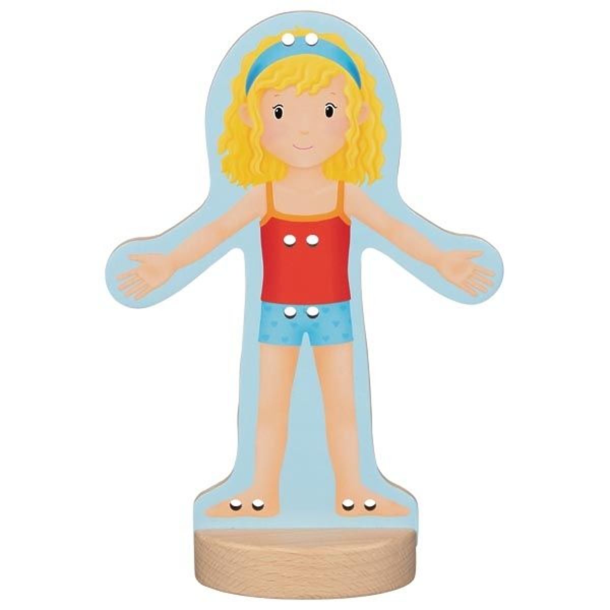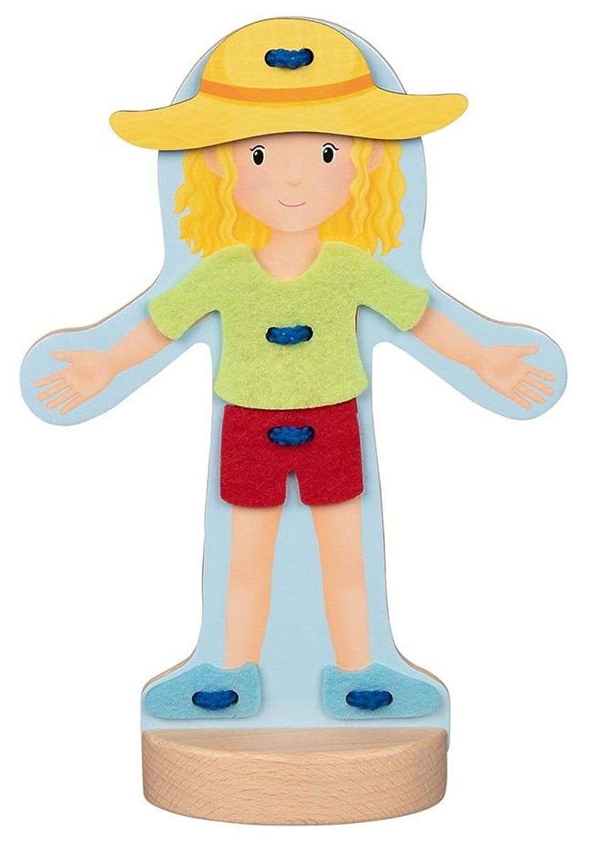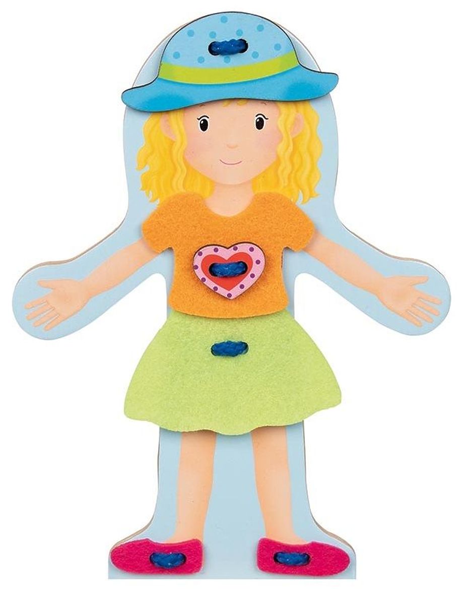 Lernen Sie Justynka kennen. Justynka verbringt gerne Zeit im Freien und macht viele interessante Dinge im Garten. Justynka liebt es auch, köstliche Kuchen zu backen, aber wie es in der Küche und im Garten oft der Fall ist, wird sie dabei oft schmutzig. Deshalb wechselt sie häufig die Kleidung ;-) Durch das Schnüren übt das Kind die Handgenauigkeit, die Bewegungskoordination, und außerdem beeinflussen Schnüren und manuelle Arbeiten dieser Art positiv die Gehirnentwicklung. Das Kind langweilt sich zudem nicht, da es frei experimentieren und die Figur auf viele Arten umkleiden kann.