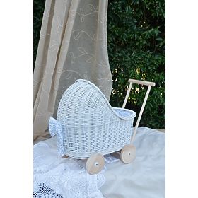 Korbwagen für Puppen aus einer einzigartigen „Country“-Kinderkollektion. Es ist ein wunderschöner und einzigartiger Puppenwagen, der den Traum jeder jungen Dame .. mehr