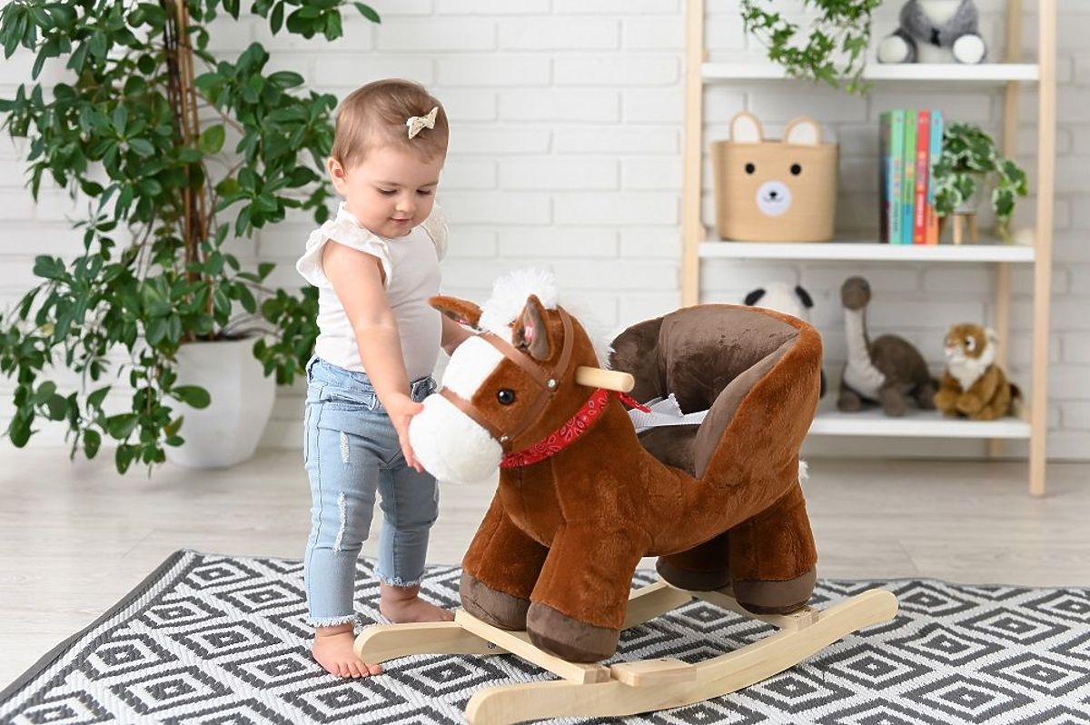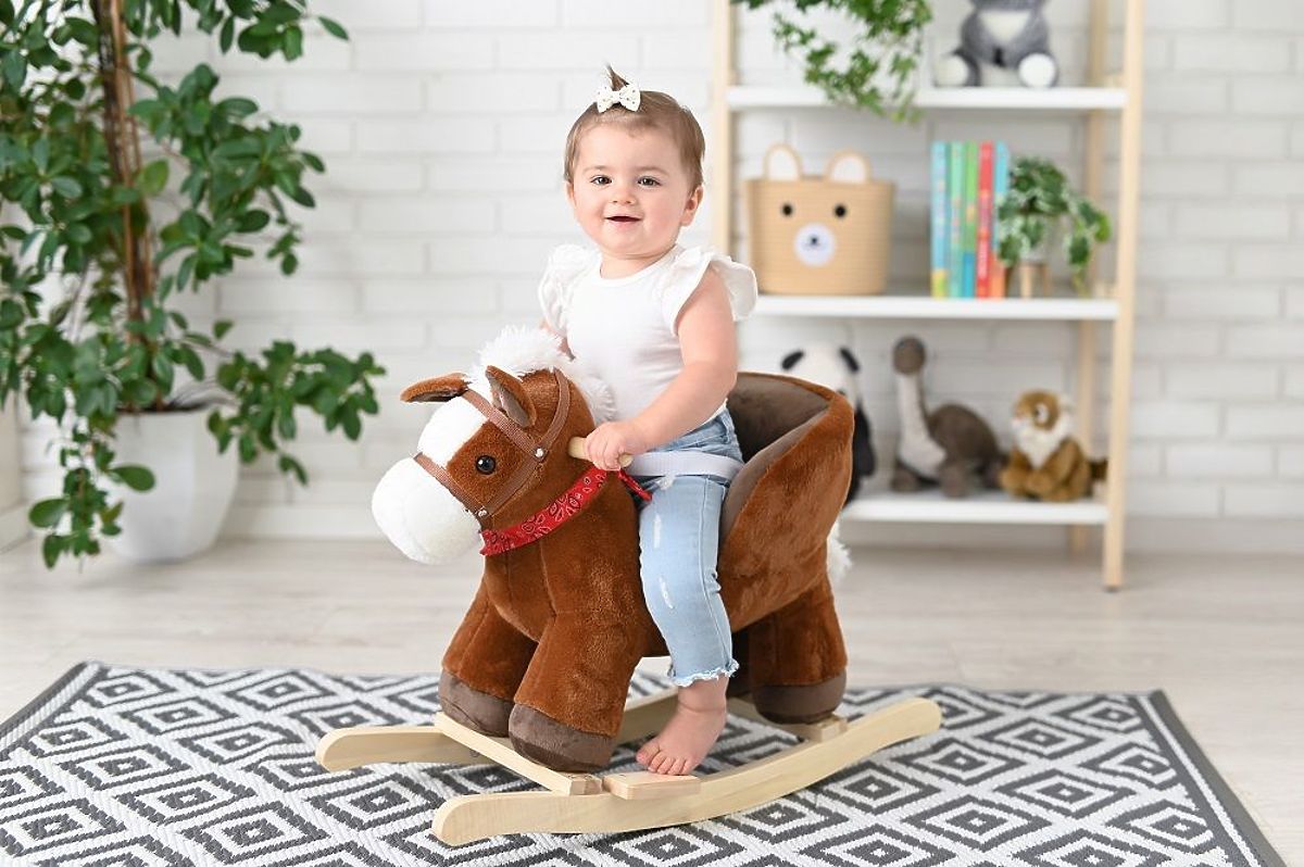 Dieses traditionelle Spielzeug ist auch der erste Freund und Begleiter beim Spielen. Das Pferd mit Sitz ist für jüngere Kinder gedacht, für die ein traditionelles Pferd nicht sicher wäre. Dank des zusätzlichen Gurts können Kinder ab dem 10. Monat darauf schaukeln.