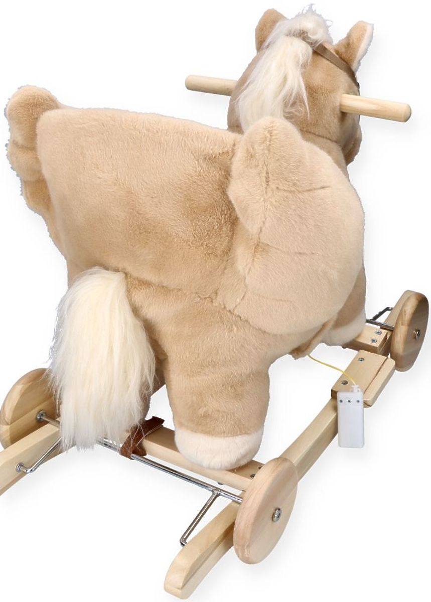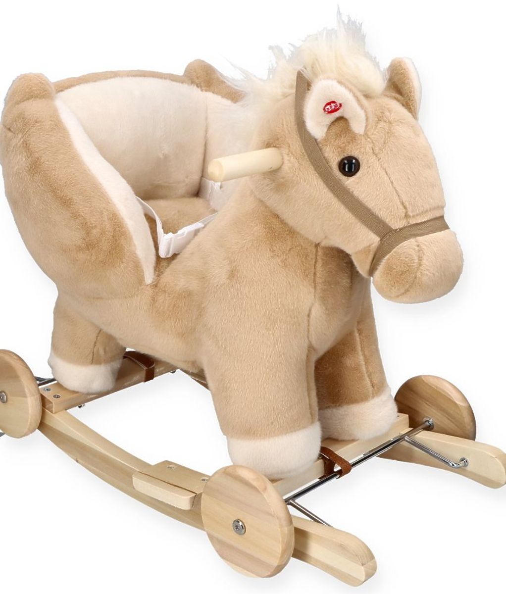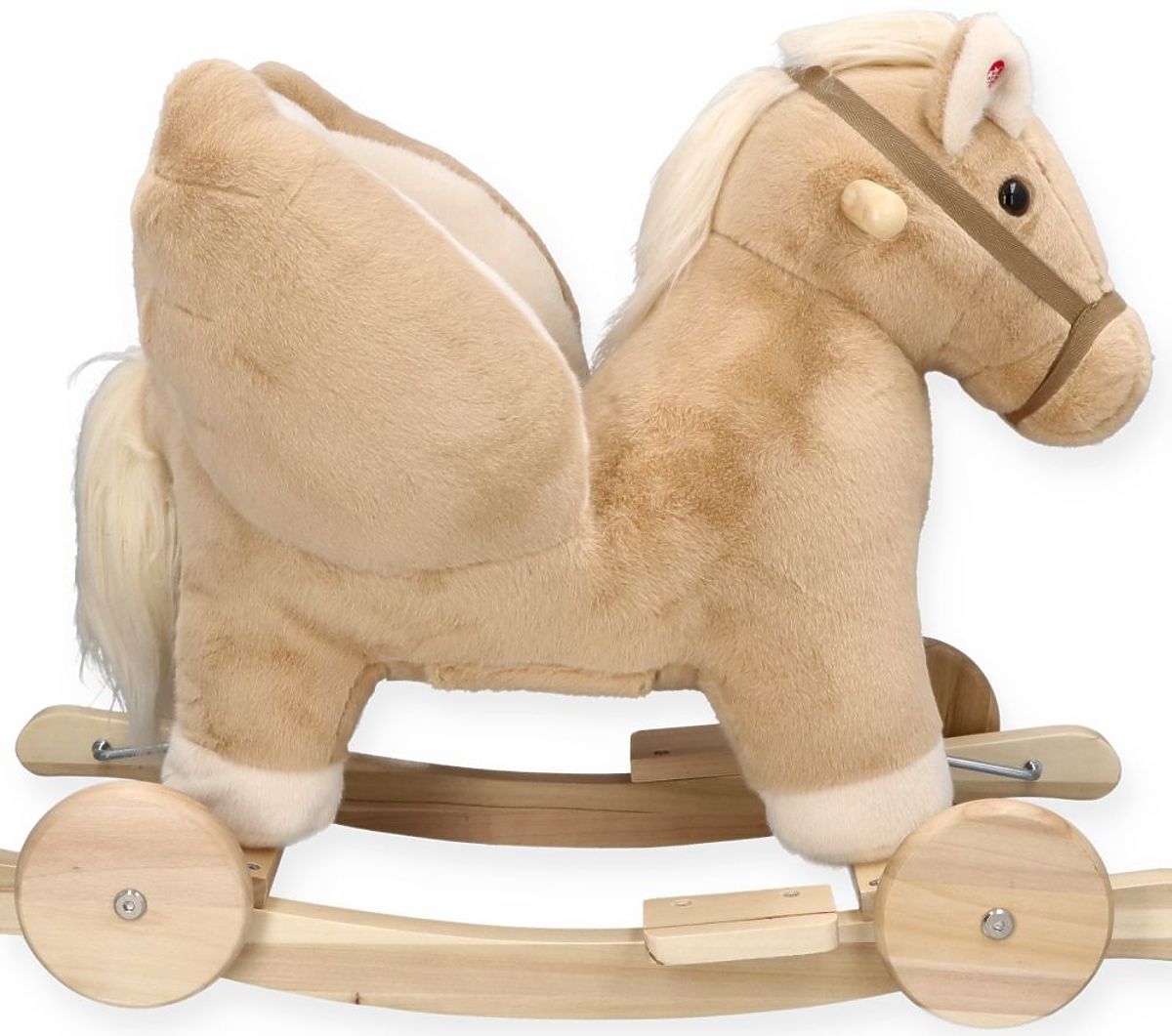 Schaukelnder Pegasus mit Rädern in einer neuen niedlichen Version. Sanfte Farbe, weich und angenehm zu berühren, bequem und sicher - das sind nur einige seiner vielen Vorzüge. Er wird sicherlich der Begleiter vieler fantastischer Spiele Ihres Kindes.