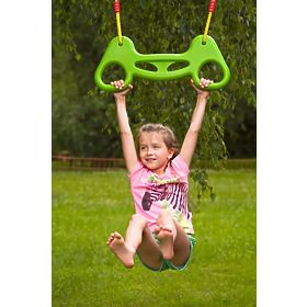 Die Schaukelstange aus Kunststoff wird für Kinderübungen sowohl zu Hause als auch im Garten verwendet. Es handelt sich um ein einfaches Sportzubehör, das an einer festen Struktur oder einem Baum aufgehängt werden kann.