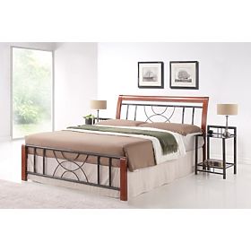 Design Bett in schwarzem Metall mit einer Kombination aus Massivholz antiken kirschroter Farbe. Der Preis des Bettes Gitter gezählt. Der Schlafbereich des Bettes ist 180x200 cm. Matratze ist nicht im Bett enthalten ist es notwendig, es zu bestellen, empfehlen wir Dimension 180x200 cm.