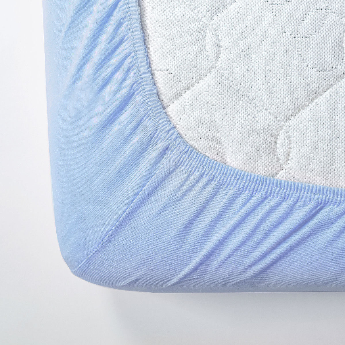 Baumwoll-Spannbettlaken in hellblauer Farbe . Das Laken ist aus hochwertigen Baumwollgarnen gewebt, weshalb es seine Eigenschaften auch nach mehrmaligem Waschen .. mehr