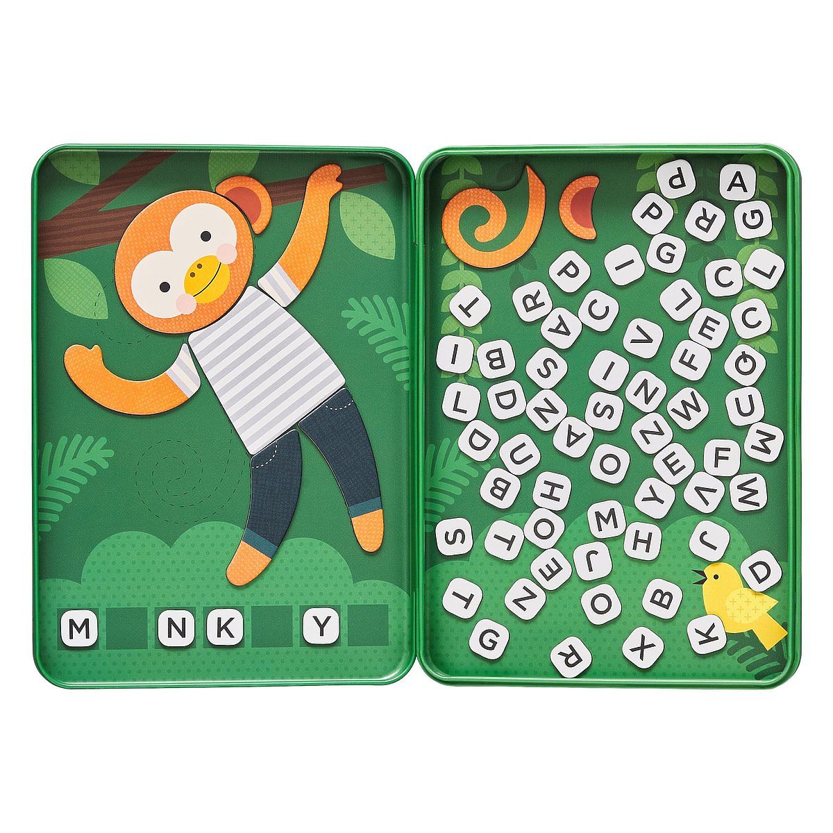 Errate das Geheimwort deines Teamkollegen, bevor er das Affenbild fertigstellt! Kinder werden ihren Wortschatz mit diesem magnetischen Reisespiel erweitern – es ist im Grunde ein verbessertes Galgenspiel ... Hauptmerkmale: Tolles Reisespielzeug in einer Metallbox Bedruckt mit ungiftigen Farben, die sich um die Gesundheit von Kindern und den Planeten kümmern