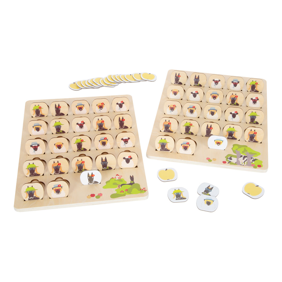 Wer hat die Äpfel gestohlen? Mit diesem Spiel kann die ganze Familie raten, es reicht, gute Beobachtungsfähigkeiten zu haben, um die Figur „4 Freunde“ so schnell wie möglich zu entdecken. Das klassische Spiel ist aus robustem Holz gefertigt und hat ein kindgerechtes Design. Im Set finden Sie 2 Spielbretter, auf die Sie die illustrierten Teile legen, sowie 22 Kartonkarten mit Figurenbildern. 2 in 1, kann auch als Memory gespielt werden. Geliefert in einer hochwertigen Box. Die Kuh Olga und der Hahn Heinz versuchen herauszufinden, wer die Äpfel von der Wiese gestohlen hat, aber die Verdächtigen haben sich sehr gut versteckt! Das Spiel eignet sich als Einführung in die Welt der Ähnlichkeiten und Unterschiede. Das Gesellschaftsspiel hat sehr einfache Regeln und ist für Menschen jeden Alters geeignet. Es hilft, Kombinationsfähigkeiten zu entwickeln und die Konzentration zu trainieren. Hauptmerkmale: beliebtes Spiel mit einfachen Regeln aus robustem Holz, zwei Spielbretter, 22 Kartonkarten, 2 in 1, kann auch als Memory verwendet werden, hochwertige Aufbewahrungsbox, unterstützt die Entwicklung von Kombinationsfähigkeiten und trainiert die Konzentration, kompatibel mit anderen Spielen „4 Freunde“