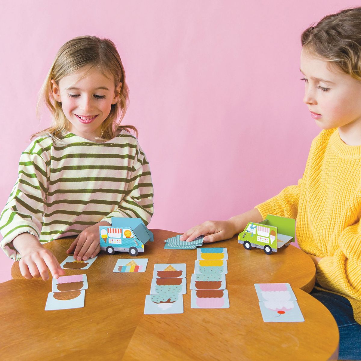 Naschkatzen, vereinigt euch! Das leckerste Spiel ohne Zuckerzusatz. Stapelt Eiswaffeln und fügt Streusel in diesem lustigen Puzzle hinzu. Sammelt so viele Eiskugeln wie möglich und gewinnt, aber vergesst nicht die Streusel! Hauptmerkmale: 52 illustrierte Karten und 4 EiswagenSpiel für 2 bis 4 Spieler, durchschnittliche Spieldauer 10 MinutenHergestellt aus recycelten Materialien, gedruckt mit PflanzenfarbenFür Kinder von 4 bis 8 JahrenEntspricht allen Sicherheitsnormen