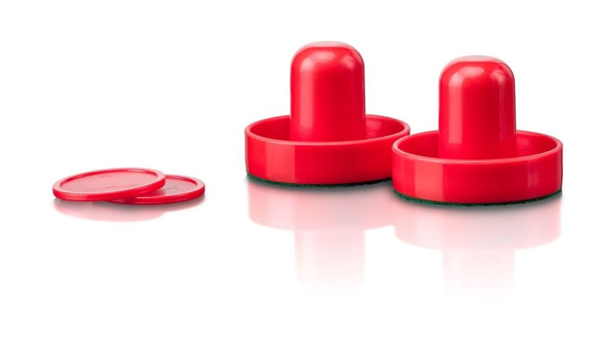 Das Set enthält eine Platte, zwei Schläger und zwei Pucks.