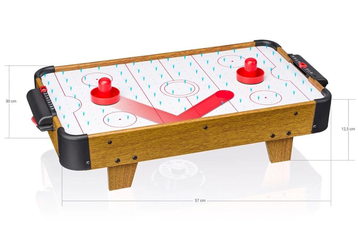Erinnern Sie sich an die Air-Hockey-Automaten? Jetzt können Sie Ihre eigene Mini-Version zu Hause haben. Das Spielzeug ist für zwei Personen gedacht und nicht nur für Kinder. Auch Erwachsene erinnern sich gerne an den Spaß mit Air-Hockey.