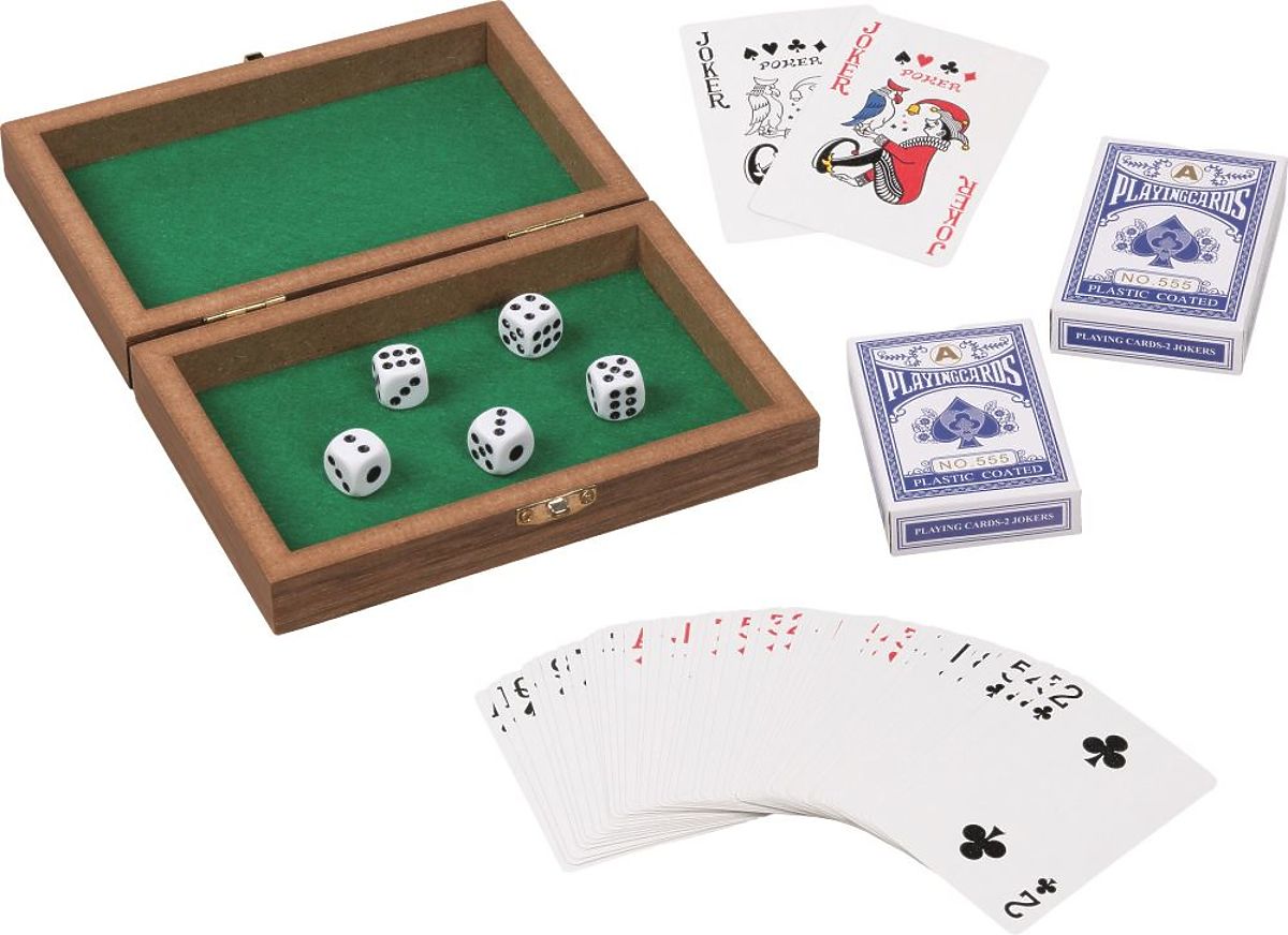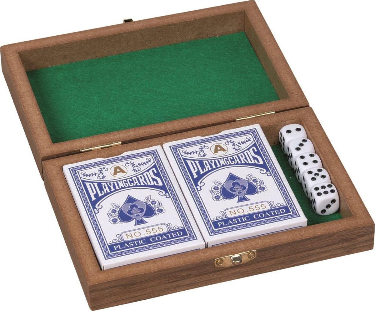 Plötzlicher Bedarf, Würfel zu werfen? Oder Lust auf eine Partie Poker, Makao oder einfach Krieg? Mit dieser eleganten Box können Sie jederzeit Ihre Kartenspielwünsche erfüllen :)