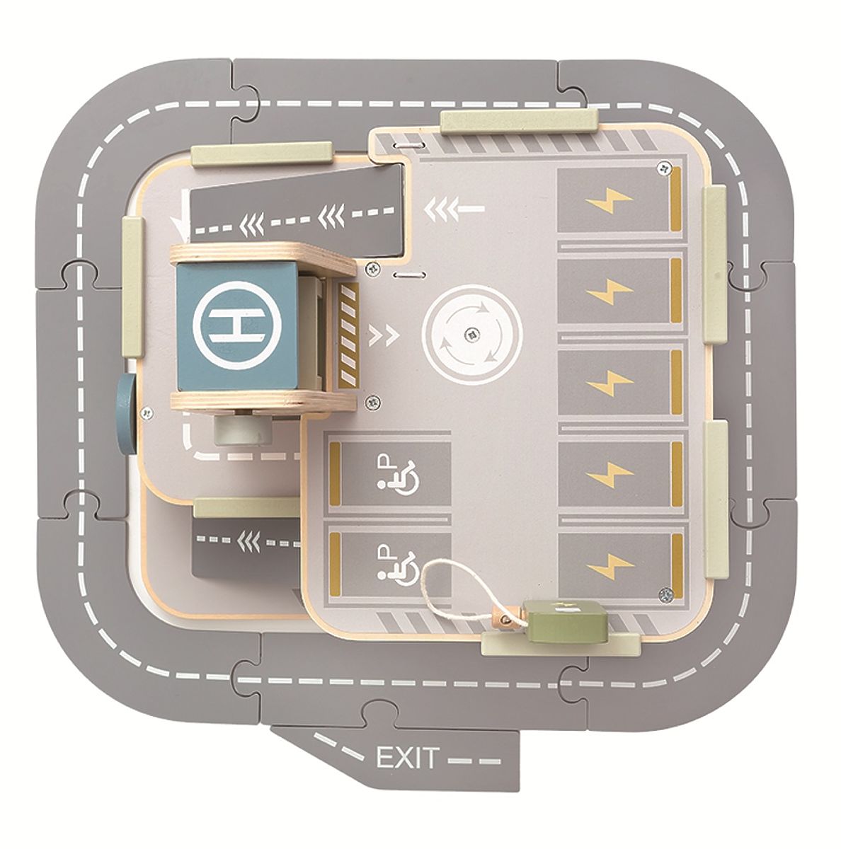 Alle Autofans werden strahlende Augen bekommen, wenn sie die Garage mit Straße, Aufzug und Hubschrauberlandeplatz sehen. Platzieren Sie die Verkehrsschilder, .. mehr