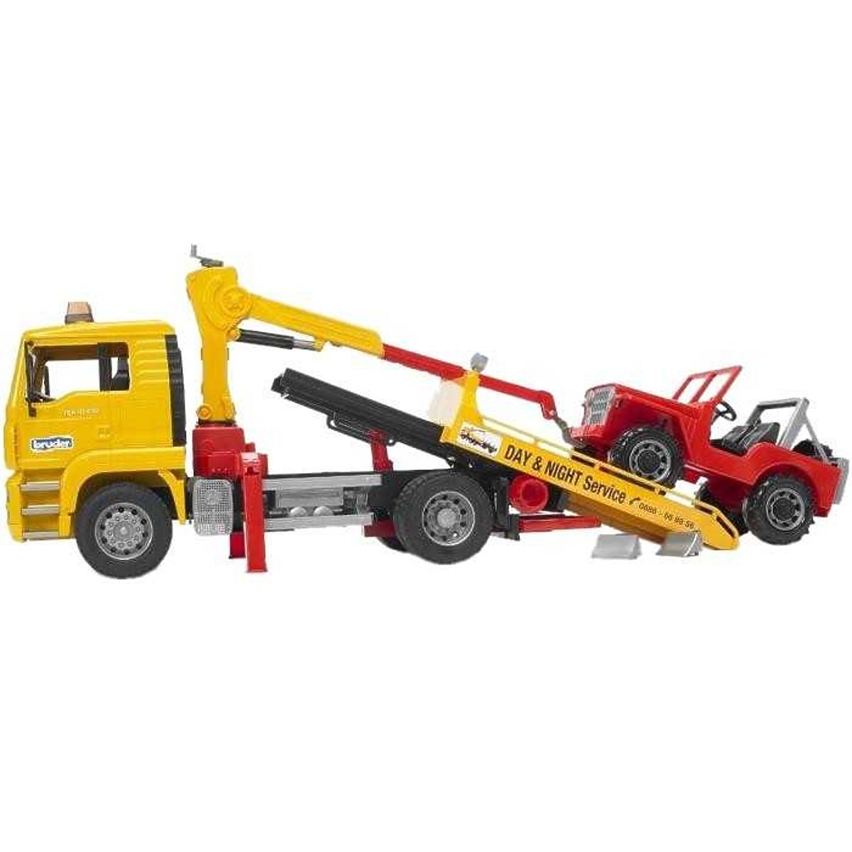 Bruder MAN Abschleppwagen + JeepAbschleppdienst + Jeep ist ein Abschleppwagen inklusive Jeep. Der MAN TGA Abschleppwagen hat eine kippbare Kabine, die einen .. mehr