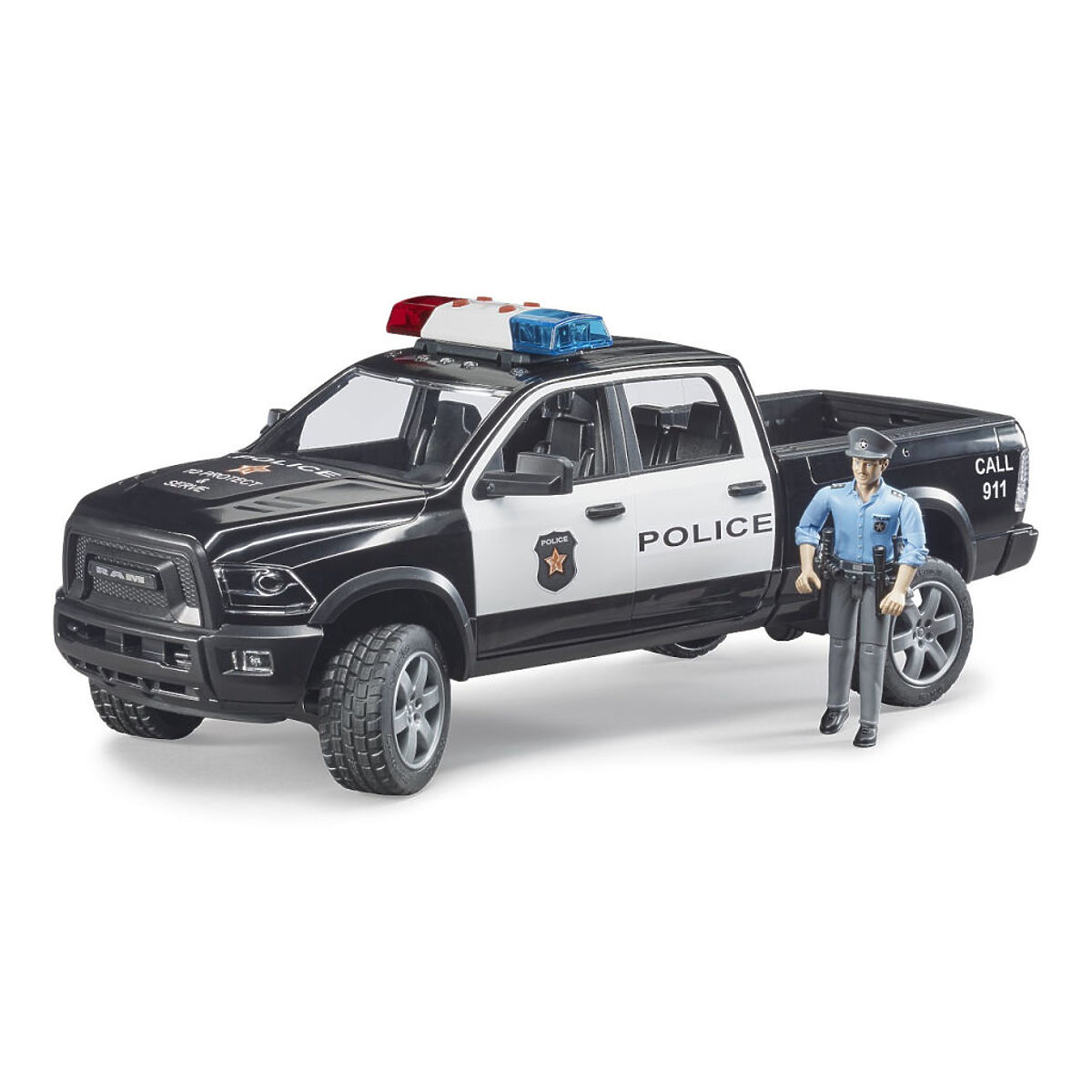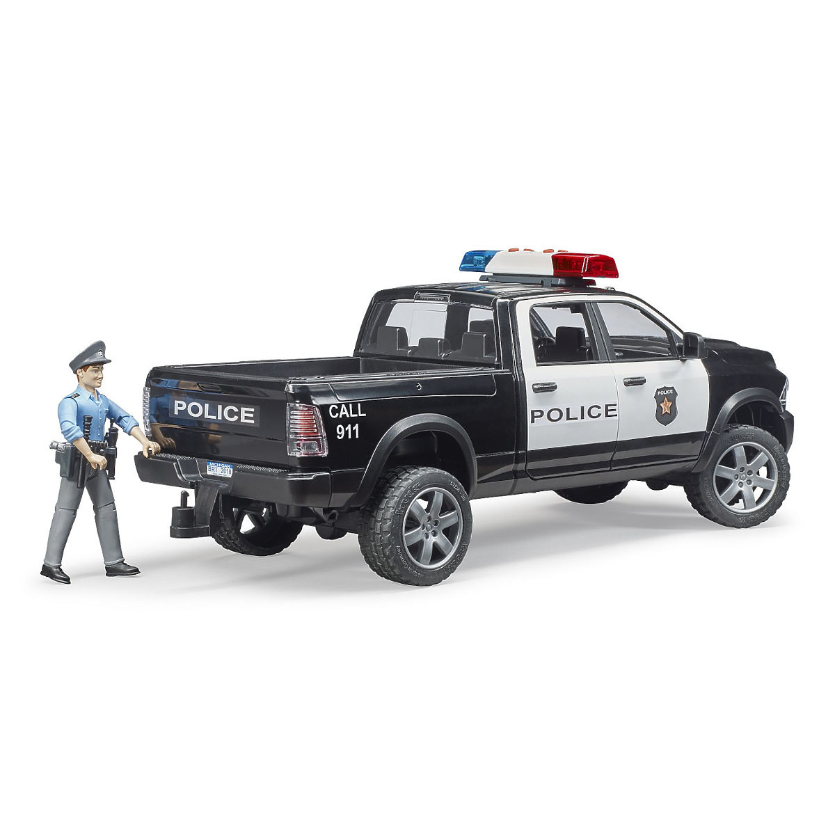 Die Sicherheit der Bruder-Welt wird durch Polizisten auf Pferden, in Autos oder mit Hundestaffeln gewährleistet. Jetzt steht eine Verstärkung in Form eines Polizeigeländewagens RAM mit Polizist zur Verfügung. Der Polizeipick-up mit Allradantrieb eignet sich für jedes Gelände, einschließlich weniger zugänglicher Wälder oder Bergregionen. Das Geländewagen in Polizeifarben verfügt über ein Licht- und Soundbalken, öffnende Türen und eine Heckklappe, sowie eine hintere Anhängerkupplung und eine lenkbare Vorderachse. Das Polizeiauto RAM von Bruder kann mit einem verlängerten Lenkrad gesteuert werden, das im Lieferumfang enthalten ist. Der Platz hinter dem Lenkrad ist für Figuren von Bruder BWORLD angepasst. Die Polizistenfigur mit Polizeimütze hat bewegliche Gliedmaßen und ist mit einem Gürtel ausgestattet, der notwendige Utensilien wie Schlagstock, Pistole, Handschellen und ein Funkgerät enthält. Das Bruder-Modell enthält: Polizeigeländewagen RAM mit Blaulicht und eine Polizistenfigur mit Zubehör. Hauptmerkmale: Licht- und Soundbalken, öffnende Türen und Heckklappe, hintere Anhängerkupplung und lenkbare Vorderachse, verlängertes Lenkrad zur Steuerung der Vorderräder.