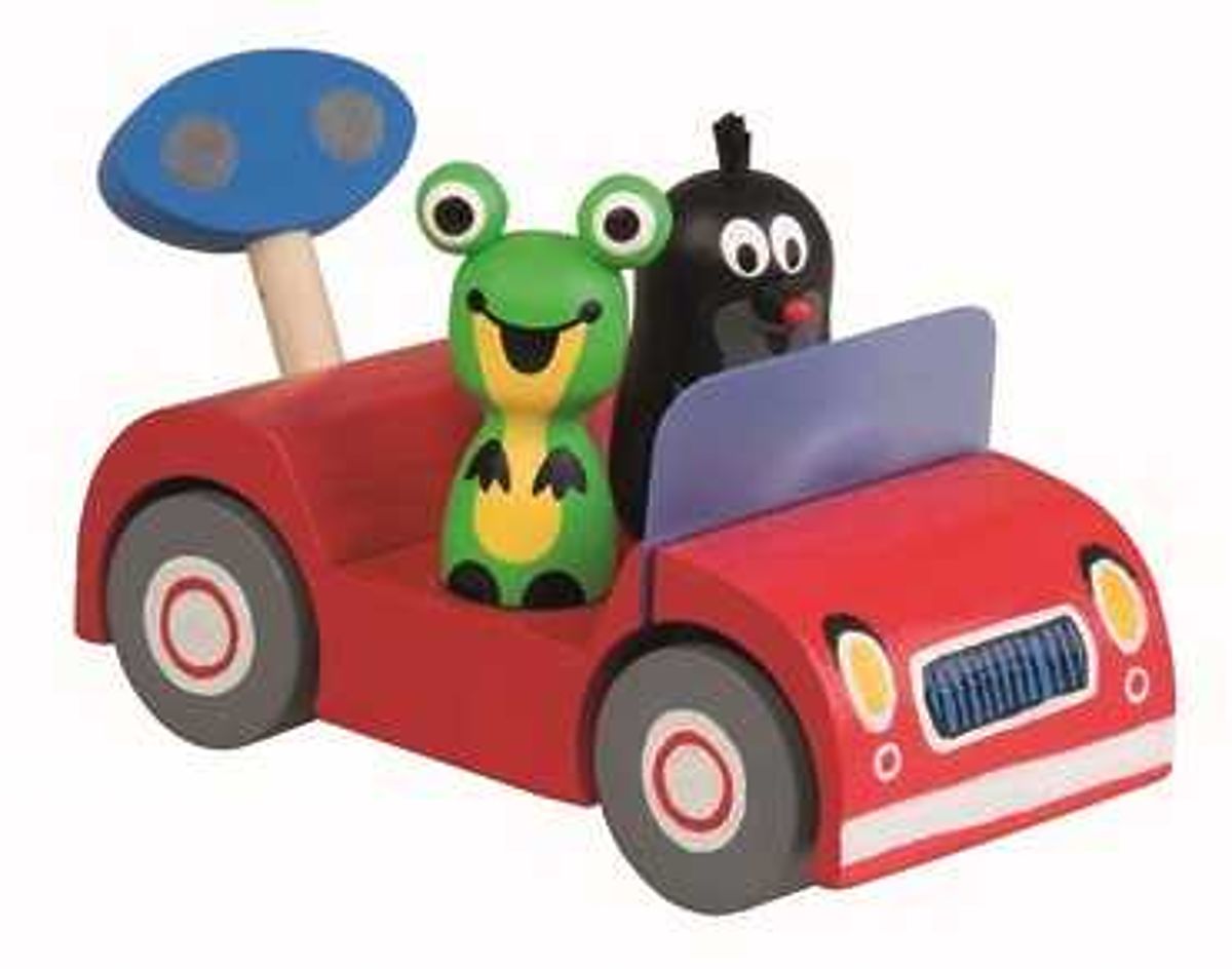 Der kleine Maulwurf mit seiner Freundin Frosch im roten Auto auf einem Ausflug. Die Figuren und der Schlüssel können beliebig herausgenommen und ausgetauscht werden. Hauptmerkmale: Das Produkt erfüllt die EU-Anforderungen an die Sicherheit von Spielzeugen, geeignet für Kinder ab 3 Jahren © Zdeněk Miler