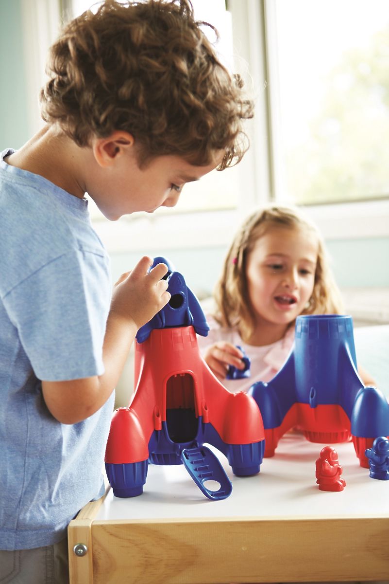 Wenn Sie nach Plastikspielzeug für den Sandkasten oder das Wasser suchen und dabei großen Wert auf die Sicherheit Ihrer Kinder legen, bieten wir Ihnen die amerikanische Marke für umweltfreundliches Spielzeug, Green Toys, an. Diese ist nicht nur in Amerika populär, sondern feiert mit ihren Produkten weltweit unglaubliche Erfolge. Green Toys steht vor allem für verantwortungsvolle Herstellung von Spielzeug aus recyceltem Plastik von Milchflaschen. Start in 3-2-1 jetzt... Die Green Toys Rakete begibt sich auf eine weitere umweltfreundliche Mission in den tiefen Weltraum! Die Rakete hat ein abnehmbares Cockpit und zwei Astronauten, die Raumanzüge, Helme und Rucksäcke mit zwei Sauerstoffflaschen haben. Sie verfügt auch über große Eingangstüren, die nach unten klappen und als Treppe dienen. Hauptmerkmale: sicheres Material für Kinder, das kein PVC, Bisphenol oder Phthalate enthält, hergestellt aus recyceltem Plastik von Milchflaschen, robustes und glattes Material, originelles Design, die Verpackung ist 100% umweltfreundlich und recycelbar.
