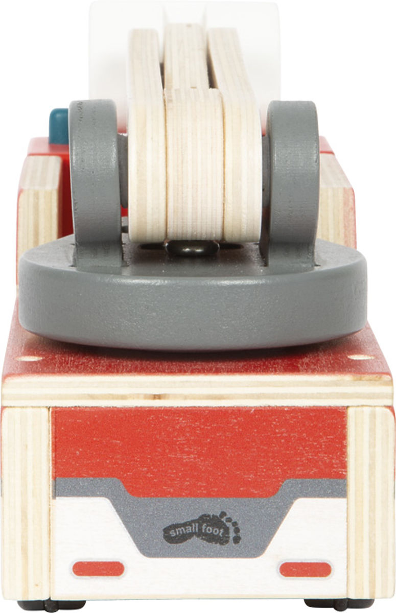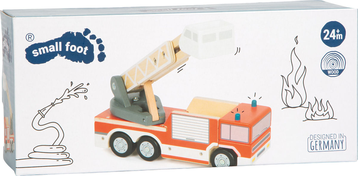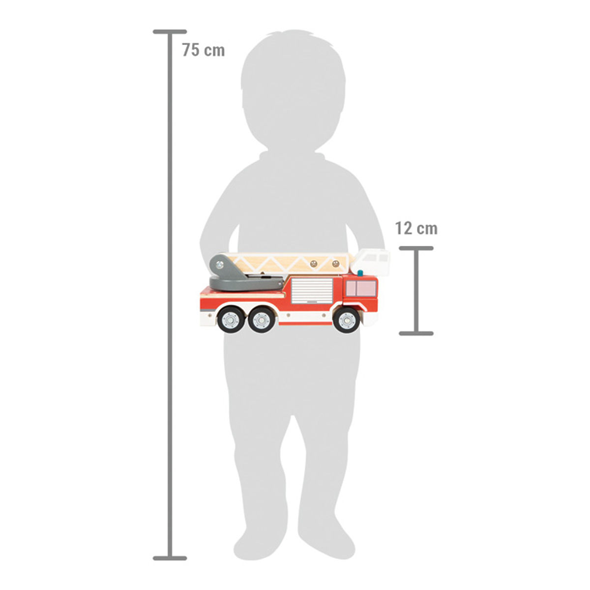 Das perfekte Fahrzeug für kleine Feuerwehrleute! Die Feuerwehrleiter dreht sich um 360 Grad. Das Fahrzeug eignet sich für frühes Feuerwehrspiel. Dank der abgerundeten Kanten und Fensteröffnungen können kleine Kinderhände es leicht greifen und bewegen. Gummierte Reifen sorgen zudem für leise Bewegungen. Dieses Fahrzeug mit drehbarer Leiter darf in keinem Fuhrpark fehlen! Hauptmerkmale: 360-Grad-Drehung der Leiter, fördert die Feinmotorik, unterstützt die Hand-Auge-Koordination, gummierte Räder
