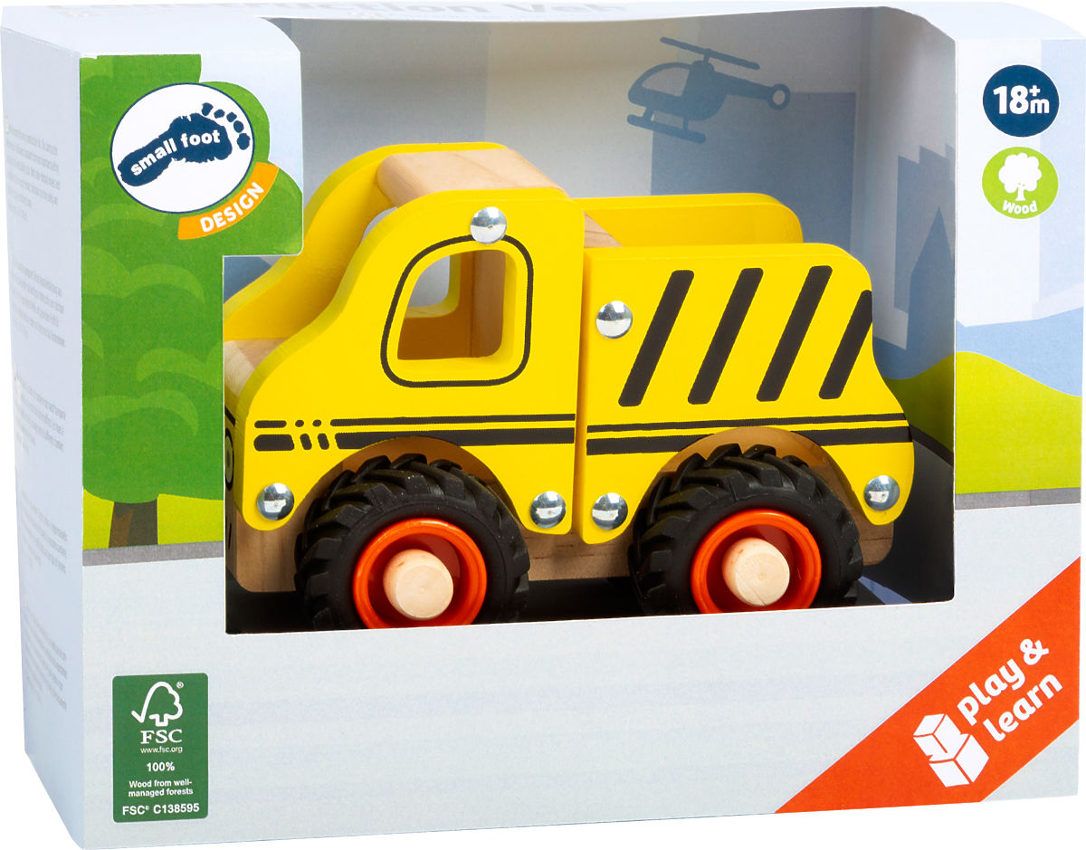Ausgestattet für jede Baustelle. Dieses Bau-Fahrzeug aus 100% FSC®-zertifiziertem Holz transportiert die wichtigsten Materialien zur nächsten Baustelle. Dank der gummierten Reifen mit geeignetem Profil für unebenes Gelände fährt es sicher und leise durch das Kinderzimmer. Ein kompaktes Fahrzeug, das jedem Kind Freude bereitet. Hauptmerkmale: 100% FSC®-zertifiziertes Holz, gummierte Reifen. Das FSC®-Siegel (Forest Stewardship Council) garantiert, dass das Holz, aus dem das Produkt hergestellt wurde, nicht illegal geschlagen wurde und aus Wäldern stammt, die umweltfreundlich oder naturverträglich bewirtschaftet werden, wobei strenge Umwelt- und Sozialanforderungen eingehalten werden. Das FSC®-Siegel auf dem Produkt bedeutet, dass Sie durch Ihren Kauf helfen, Wälder zu schützen und eine umweltfreundliche, verantwortungsvolle oder naturverträgliche Bewirtschaftung zu unterstützen, wodurch unsere Wälder stabiler, gesünder, eine natürliche Artenzusammensetzung haben und besser gegen die negativen Folgen des Klimawandels gewappnet sind.