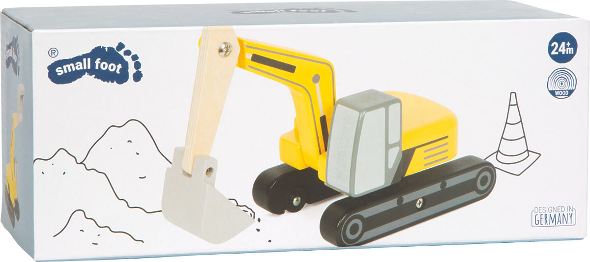 Perfektes Transportmittel für kleine Bauarbeiter! Heben und Bewegen von Lasten im Kinderzimmer? Ja, das ist möglich! Der Bagger dreht sich um 360 Grad und sowohl Schaufel als auch Arm sind beweglich. Die Räder sind hinter einer Kettenimitation versteckt. Es ist so einfach, die Ladung mit der Schaufel von Punkt A nach Punkt B zu bewegen. Dank der abgerundeten Kanten und Fensteröffnungen können kleine Kinderhände ihn leicht greifen und bewegen. Die gummierten Reifen sorgen zudem für leise Bewegungen. Dieser Gabelstapler darf in keinem Fuhrpark fehlen! Hauptmerkmale: 360-Grad-Drehung, beweglicher Arm und Schaufel, fördert die Feinmotorik, unterstützt die Hand-Auge-Koordination, gummierte Räder