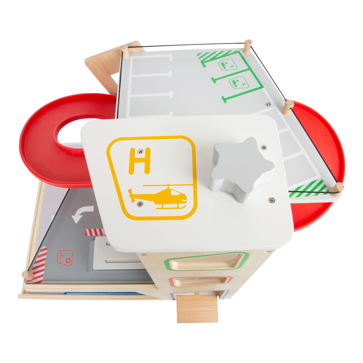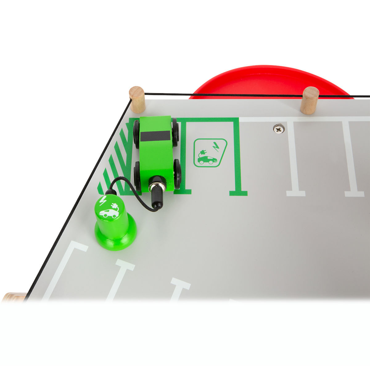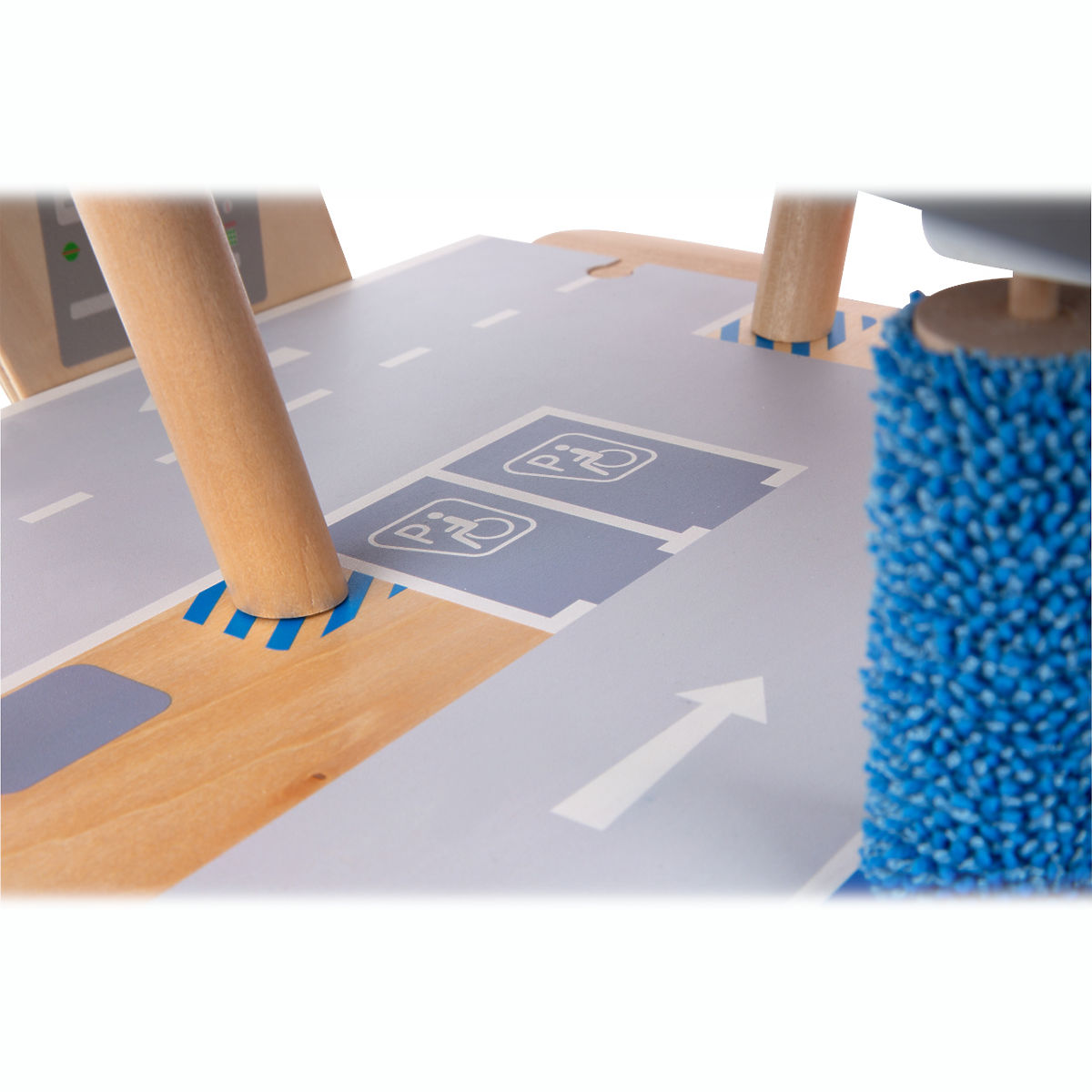Parken, tanken, waschen oder reparieren – alles mit nur einer Garage! Sie bietet drei reich ausgestattete Etagen, die durch einen attraktiven, funktionalen Aufzug und unterhaltsame, nahtlos ineinander übergehende Rampen verbunden sind. Zum Lieferumfang gehören zwei Autos, die bei fantastischen Spielen die Tankstelle, Ladestation, Hebebühne oder Waschstraße mit realistischen Bürsten nutzen können. Jede Ebene ist zudem mit einer mechanischen Schranke für besonders fesselnde Erlebnisse ausgestattet. Die Etagen sind mit einem Gummischutz versehen, der die Dynamik der Autofahrten erhöht und ein Herausfallen verhindert. Die Garage ist detailliert mit vielen bunten Symbolen und Markierungen verziert, die auch lehrreiche Elemente ins Spiel bringen. Sie besteht aus starkem, festem und widerstandsfähigem Holzsperrholz mit Ergänzungen aus Massivholz und unbedenklichem Kunststoff. Das Produkt erfordert Montage und wird mit einer bebilderten Aufbauanleitung geliefert. Hauptmerkmale: Garage und 2 Autos, 3 Etagen verbunden durch funktionalen Aufzug und 2 Rampen, Tankstelle, Ladestation, Hebebühne, Waschstraße und 3 Schranken, kompatibel mit Eisenbahnschienen und Zubehör anderer Hersteller, reich verziert mit einfachen Symbolen und Markierungen, robustes und widerstandsfähiges Holzdesign.