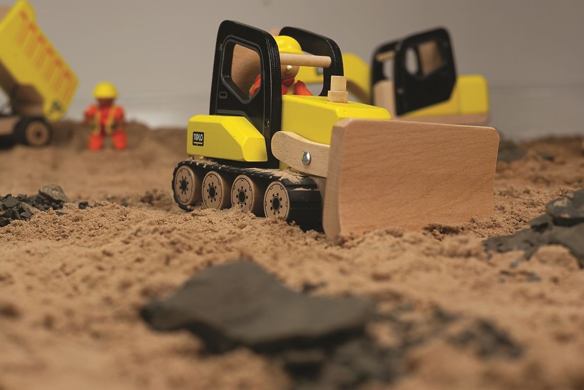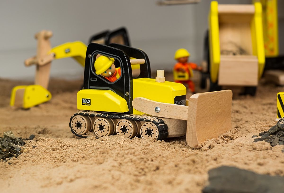 Dieser massive, detaillierte Holz-Bulldozer hat keine Probleme, alles aus dem Weg zu räumen! Seine Schaufel ist beweglich und kann nach oben und unten verstellt werden, und er verfügt sogar über einen Kettenantrieb, was ihn einem echten Fahrzeug sehr nahe bringt. Der Bulldozer hat abgerundete Formen und ist insgesamt so gestaltet, dass er leicht von kleinen Kinderhänden gegriffen werden kann. Er ist oben offen, sodass Bauarbeiterfiguren einfach hineingesetzt werden können. Er fördert Kreativität und Vorstellungskraft, entwickelt die Hand-Auge-Koordination und die Feinmotorik. Hergestellt aus hochwertigen Materialien aus verantwortungsvollen Quellen. Entspricht der europäischen Sicherheitsnorm. Hauptmerkmale: leicht greifbar, fördert Kreativität und Vorstellungskraft, einfaches Einsetzen von Bauarbeiterfiguren