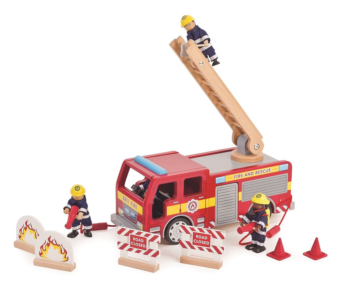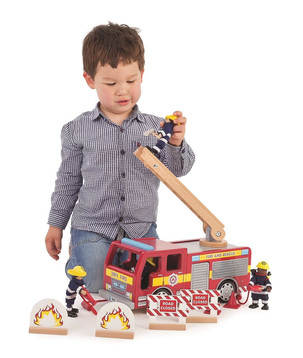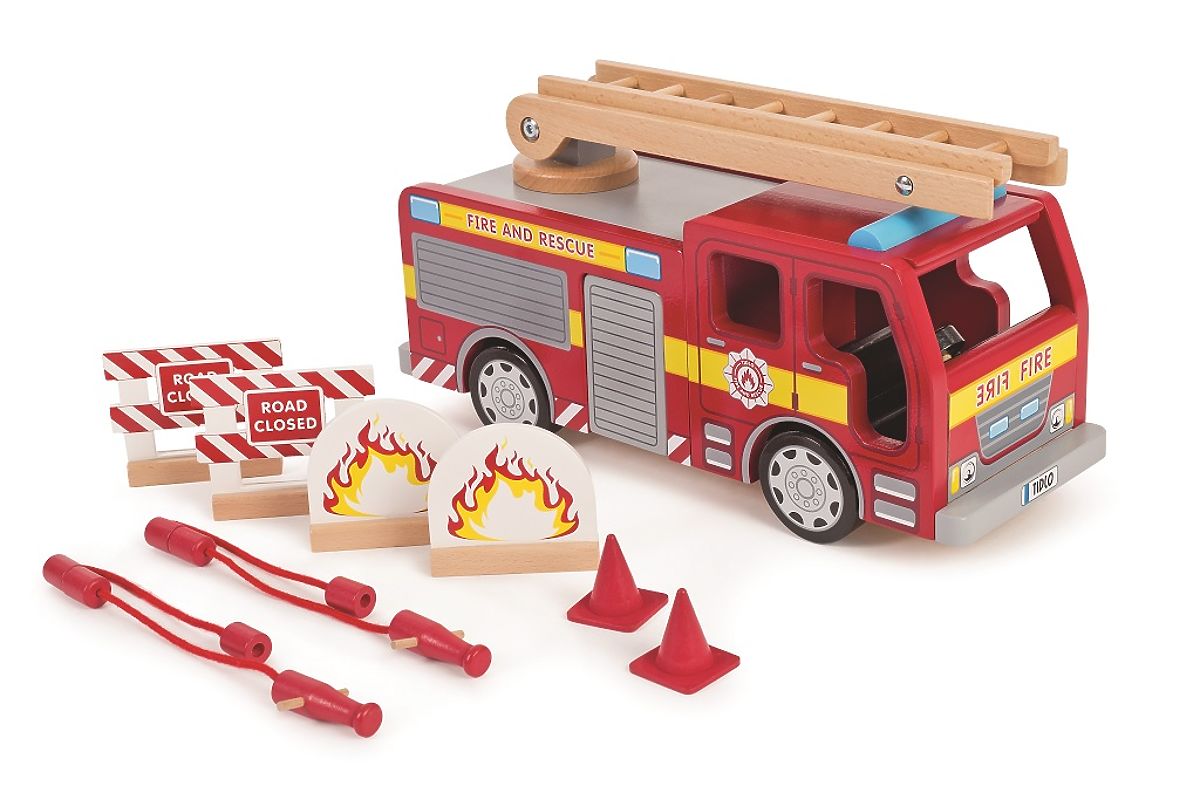 Mit diesem hölzernen Feuerwehrauto werden Kinder in ein fantasievolles Spiel vertieft sein. Das perfekte Spielzeug für jeden Enthusiasten oder angehenden Feuerwehrmann, das Set enthält eine ausziehbare Leiter und zwei Seitentüren. Diese Türen sind öffnbar, das Dach ist abnehmbar und der Schlauch kann hinten angeschlossen werden! Ein sehr detailliertes Spielzeug, das Kinder stundenlang in fantasievolles Spiel versetzt. Kompatibel mit Tidlo Holz-Feuerwehrfiguren (T0117) – separat erhältlich. Es fördert die Hand-Auge-Koordination, Feinmotorik und Geschicklichkeit. Unterstützt kreatives und fantasievolles Spielen. Hergestellt aus hochwertigen Materialien aus verantwortungsvollen Quellen. Entspricht der europäischen Sicherheitsnorm. Hauptmerkmale: ausziehbare Leiter, öffnende Türen, abnehmbares Dach, abnehmbarer Schlauch, detailliertes realistisches Spielzeug, fördert Kreativität und Fantasie, entwickelt Feinmotorik