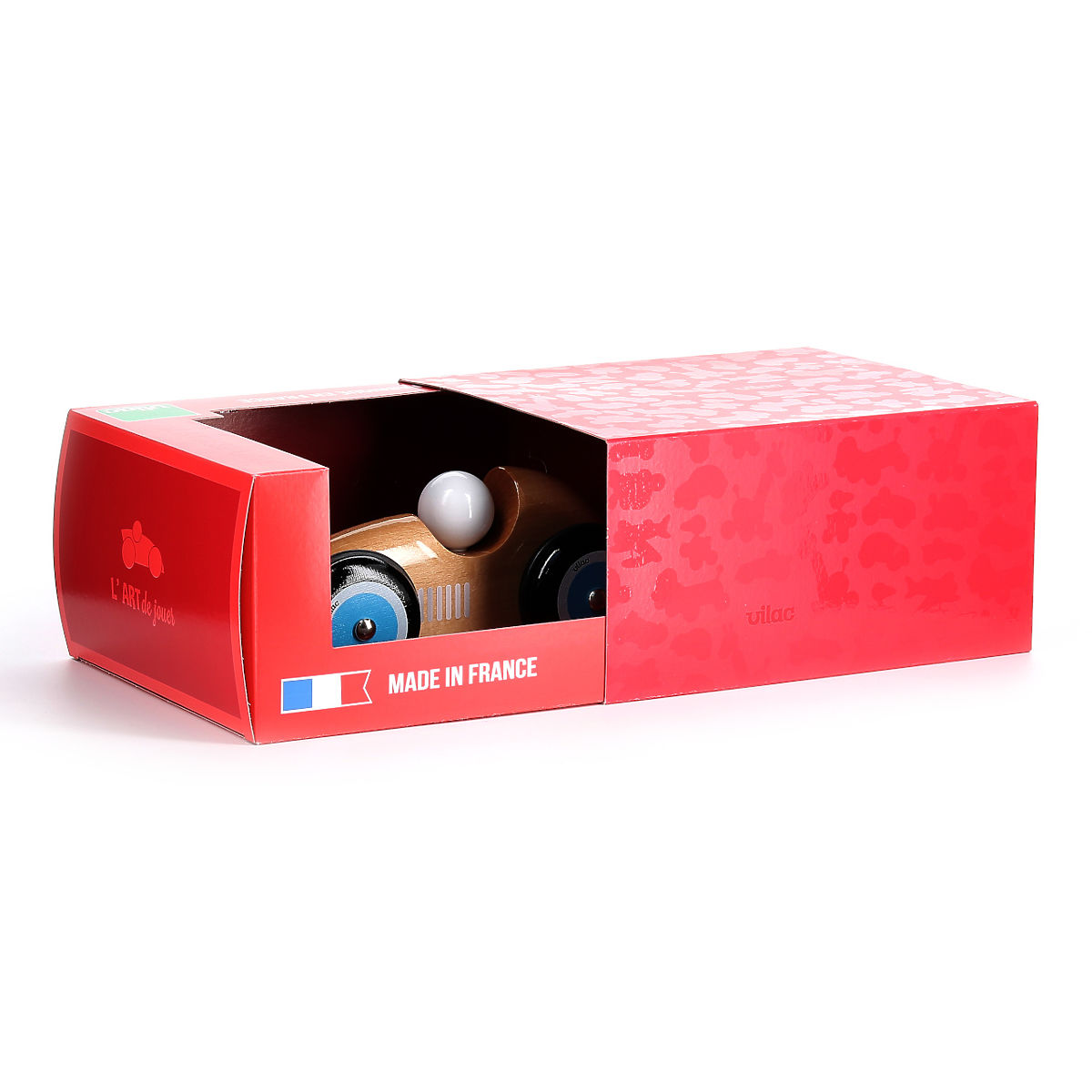 Großes Holzauto mit einzigartigen Formen und Farben, das bei jedem kleinen und großen Fahrer Begeisterung und Rennlust weckt. Durch sein Design spricht es leicht erwachsene Sammler an und wird dank seiner Größe spielend zu einem auffälligen Interieur-Accessoire. Die Teile des Autos bestehen aus massivem Holz, das durch den traditionellen Tauchlackierungsprozess gefärbt wird. Die robusten Räder zeichnen sich durch einen sanften Lauf aus und sind mit Gummiringen versehen, die das Spielzeug beim Bewegen leise machen. Hergestellt in Frankreich, geliefert in einer Premium-Box. Hauptmerkmale: einzigartiges Design und Verarbeitung, leiser und kultivierter Lauf, hergestellt in Frankreich