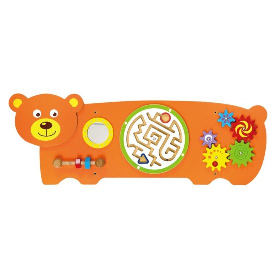 Das pädagogische Wandspielzeug bietet viele verschiedene Spiele, die die Fähigkeiten von Kindern auf spielerische Weise entwickeln. Das Spielzeug eignet sich hervorragend als Kindergarten oder Spielgerät. Zu Hause ist es eine perfekte Ergänzung für ein Kinderzimmer, Pronomen, wenn Sie nicht genügend freien Platz in den Regalen für Spielzeug haben. Der Wandbär wird auch eine interessante Dekoration des Raumes sein.