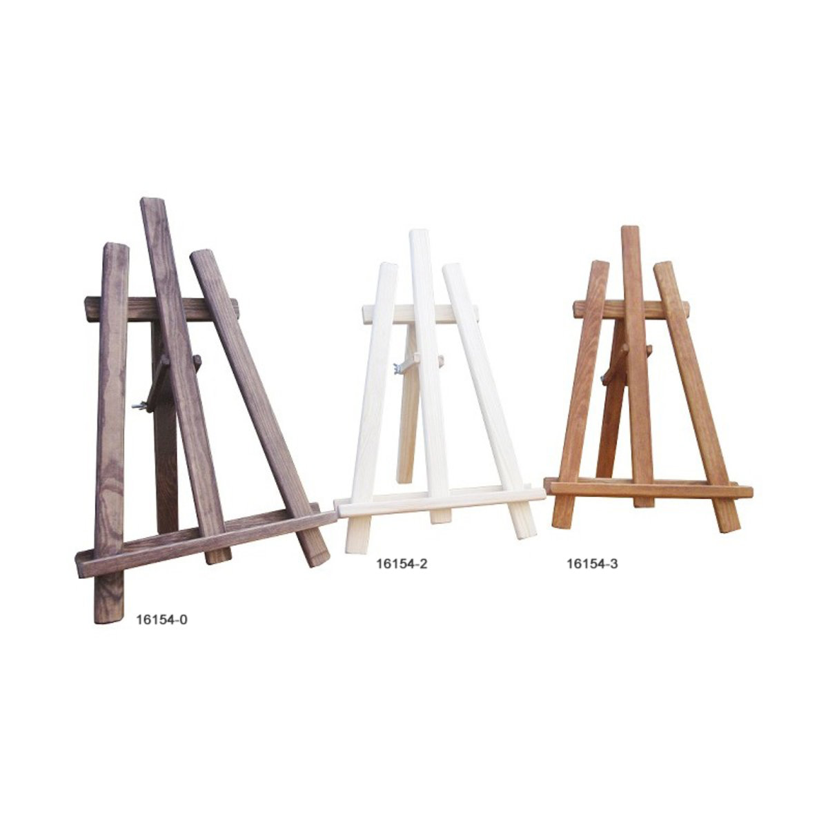 Staffelei ist 60 cm hoch und in drei Farben erhältlich: natur, Bronze und Teak.