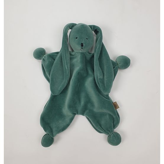 Plüsch-Maskottchen in Form eines grünen Kaninchens, das aus Velours gefertigt ist und sich angenehm anfühlt. Der perfekte Begleiter zum Schlafen, Reisen und Spielen ab den ersten Lebenstagen. Schön verpackt kann es eine tolle Geschenkidee sein, die jedem Baby gefallen wird.