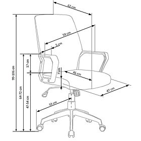 Der Stuhl ist innen mit gestepptem Möbelstoff und außen mit hochwertigem Öko-Leder bezogen. Das Gerät ist in der originalen schwarz-türkisfarbenen Farbe gefertigt. Bequemes Sitzen wird durch fünf weiche Kunststoffräder und die einzigartige Form der Rückenlehne garantiert. Die Sitzhöhe kann innerhalb von 10 cm eingestellt werden.