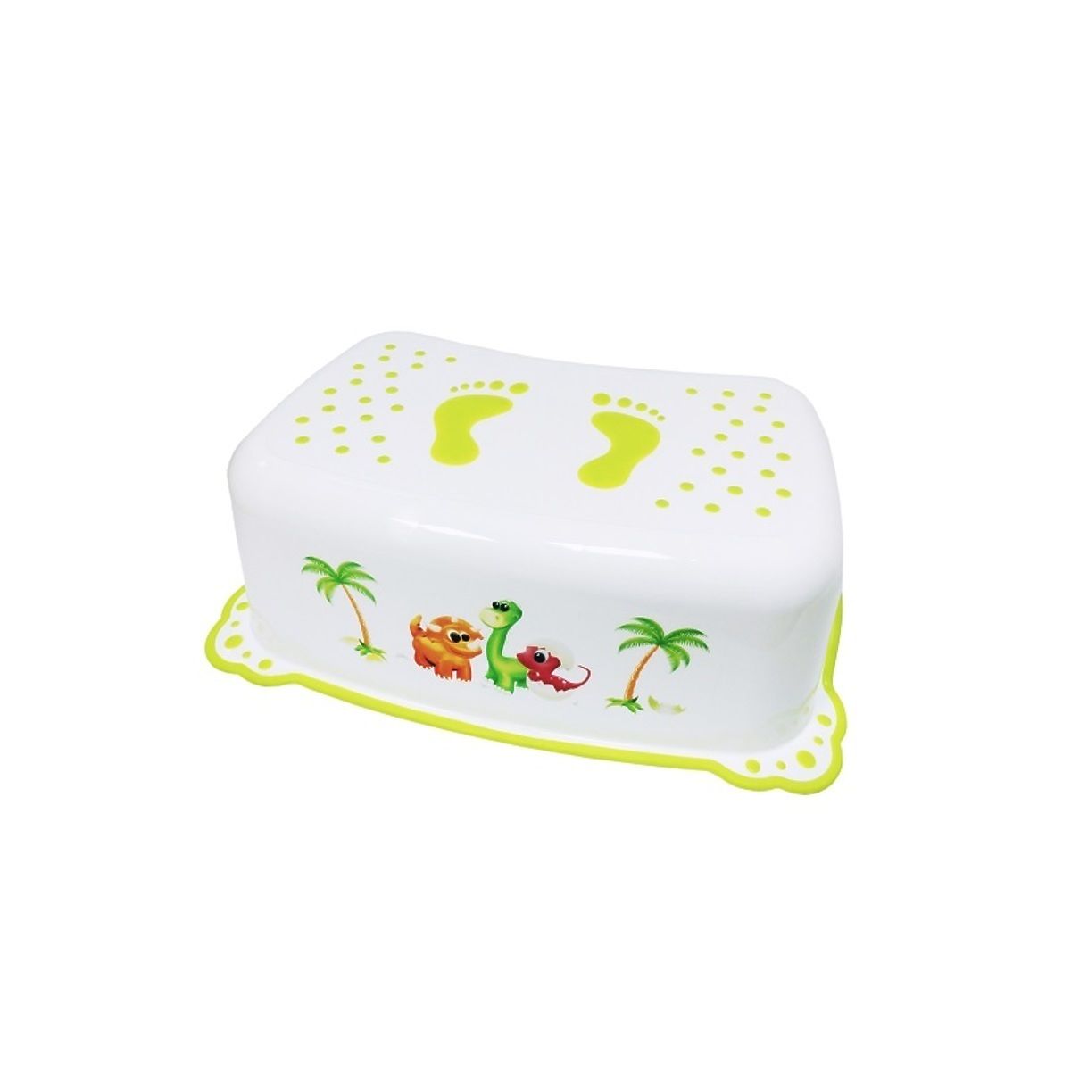 Kinder Tritthocker mit Motiven der süßen Dinosaurier. Der Tritthocker hat Anti-Rutsch Kanten, welche das Verrutschen verhindern.