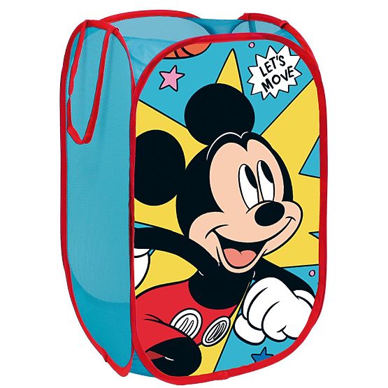 Praktischer Textilkorb für Spielzeug für alle Kinder, die Mickey Mouse mögen. Für eine einfachere Handhabung verfügt der Korb über praktische Griffe. Es nimmt wenig Platz ein und lässt sich schnell und einfach zusammenfalten . Die Konstruktion ist mit Mesh sehr leicht. Geeignet für Kinder ab 3 Jahren.