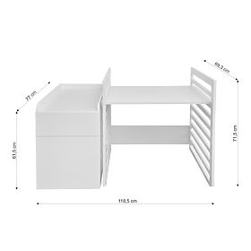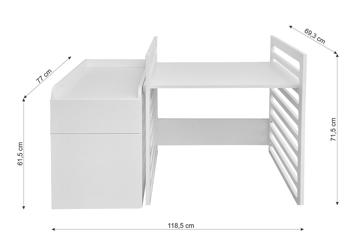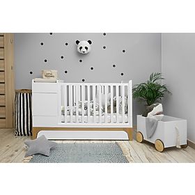 Ein einzigartiges multifunktionales und mitwachsendes Kinderbett, das Ihrem Kind bis zu 10 Jahre dient! Die Kombination aus weißer Farbe und einem Detail in Eichenholzdekor schafft einen sehr angenehmen und frischen Eindruck.