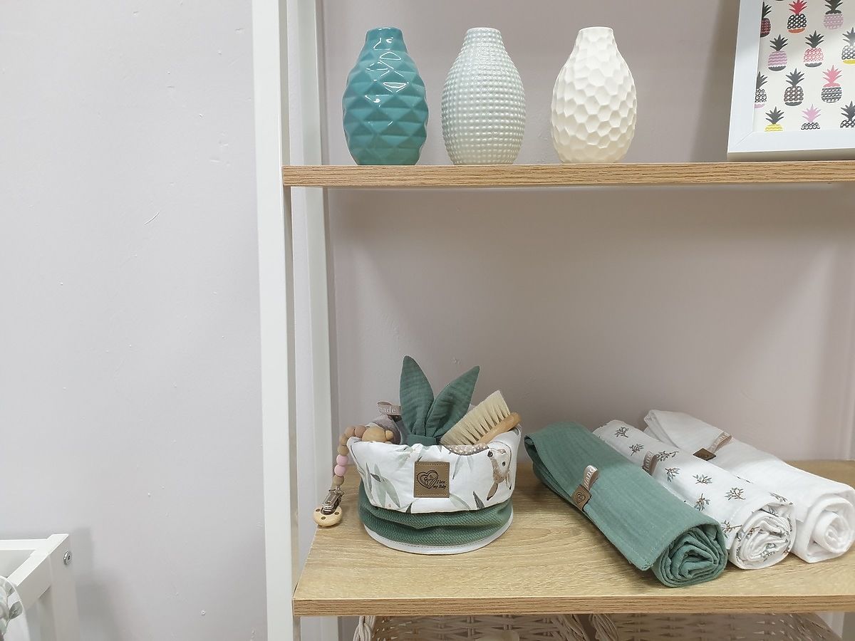 Doppelseitiger Stoffkorb für Windeln, Kosmetik und andere Babyartikel. Ein Stoffkorb mit dem Motiv von Waldtieren wird auch eine schöne Dekoration für ein Kinderzimmer sein.