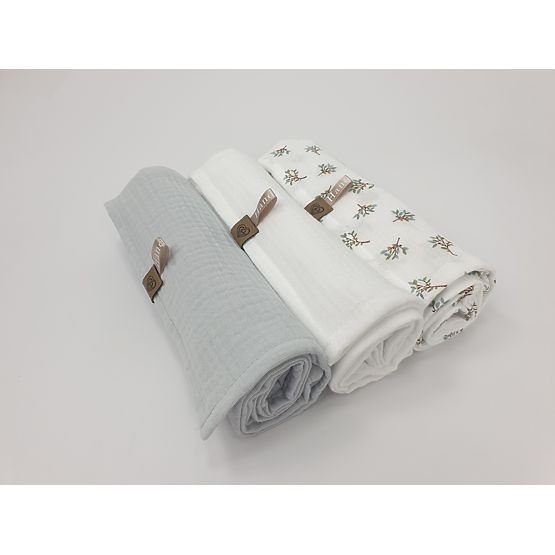 Dieses Set aus drei Musselinwindeln ist die perfekte Ergänzung für jedes Set. Windeln haben viele Verwendungsmöglichkeiten. Sie sind ideale Helfer beim Füttern von Babys. Indem Sie den Kopf des Babys auf die Windel im Bettchen, Kinderwagen oder Autositz legen, sorgen Sie für einen ruhigen und angenehmen Schlaf.