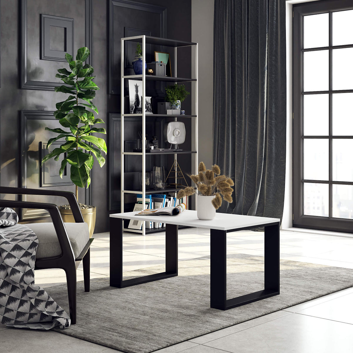 Der weiße Couchtisch Nox mit schwarzen Beinen ist eine Kombination aus attraktivem und ästhetischem Aussehen mit Funktionalität und Vielseitigkeit. Dank der Farbgebung passt der Tisch perfekt in moderne und traditionelle Innenräume und vergrößert und erhellt den Raum optisch. Die kleine Größe des Möbelstücks sorgt dafür, dass der Tisch auch in einem kleinen Raum in einer Wohnung gut seinen Zweck erfüllt. Der Tisch ist ein Möbelstück mit vielseitiger Bestimmung. Er kann nicht nur zum Kaffeetrinken, Teetrinken oder für kalte Getränke, zum Empfangen von Gästen oder zum täglichen Entspannen verwendet werden. Der Tisch mit funktioneller Platte eignet sich auch für die Arbeit mit einem Laptop. Der weiße Couchtisch Nox mit schwarzen Beinen ist aus einer abrieb- und wasserfesten laminierten Platte gefertigt, sodass die Tischplatte erfolgreich auch nass gereinigt werden kann. Die Kanten des Tisches sind mit robusten ABS-Kanten versehen, was die Widerstandsfähigkeit des Möbels gegen Beschädigungen weiter erhöht.