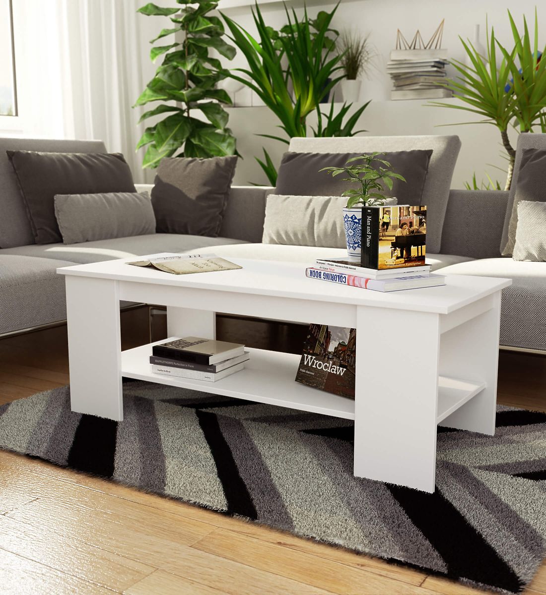 - Zusätzliches Regal erhöht die Funktionalität des Tisches